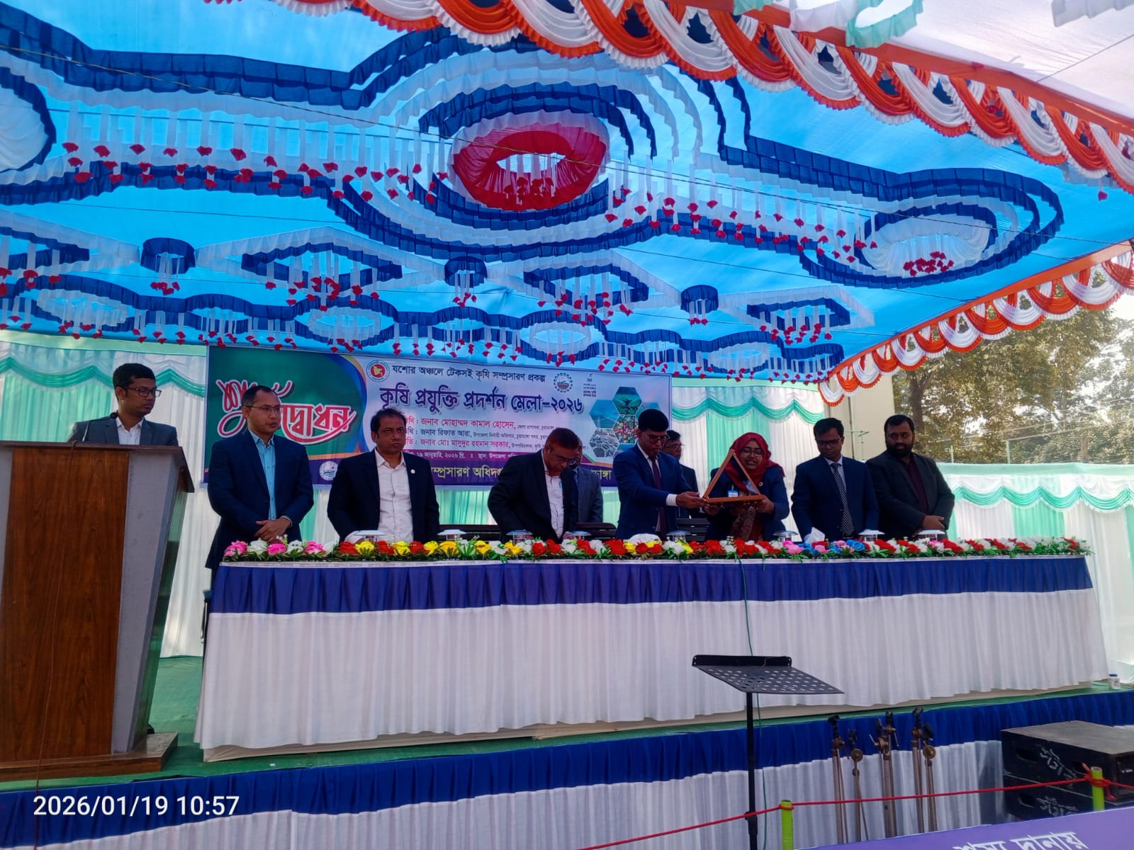 মোঃ আব্দুল্লাহ হক, চুয়াডাঙ্গা জেলা প্রতিনিধি: কৃষিতে আধুনিক প্রযুক্তির ব্যবহার বাড়াতে চুয়াডাঙ্গায় কৃষি প্রযুক্তি প্রদর্শন মেলা ২০২৬ এর উদ্বোধন করা হয়েছে। গতকাল সোমবার (১৯ জানুয়ারি) সকাল ১০ টায় সদর উপজেলা পরিষদ চত্বরে তিন দিনব্যাপি এ কৃষি প্রযুক্তি প্রদর্শন মেলার উদ্বোধন করা হয়। বেলুন উড়িয়ে ও ফিতা কেটে মেলার উদ্বোধন করেন জেলা প্রশাসক মোহাম্মদ কামাল হোসেন। পরে উপজেলা পরিষদ চত্বরে এক বর্ণাঢ্য র্যালি আয়োজিত হয়। এ সময় মেলায় প্রদর্শনকৃত ১৪ টি স্টল পরিদর্শন করেন জেলা প্রশাসক মোহাম্মদ কামাল হোসেন। পরে সদর উপজেলা পরিষদ চত্বরে এক আলোচনা সভা অনুষ্ঠিত হয়। অনুষ্ঠানে সভাপতিত্ব করেন কৃষি সম্প্রসারণ অধিদপ্তরের উপ-পরিচালক মাসুদুর রহমান সরকার।
