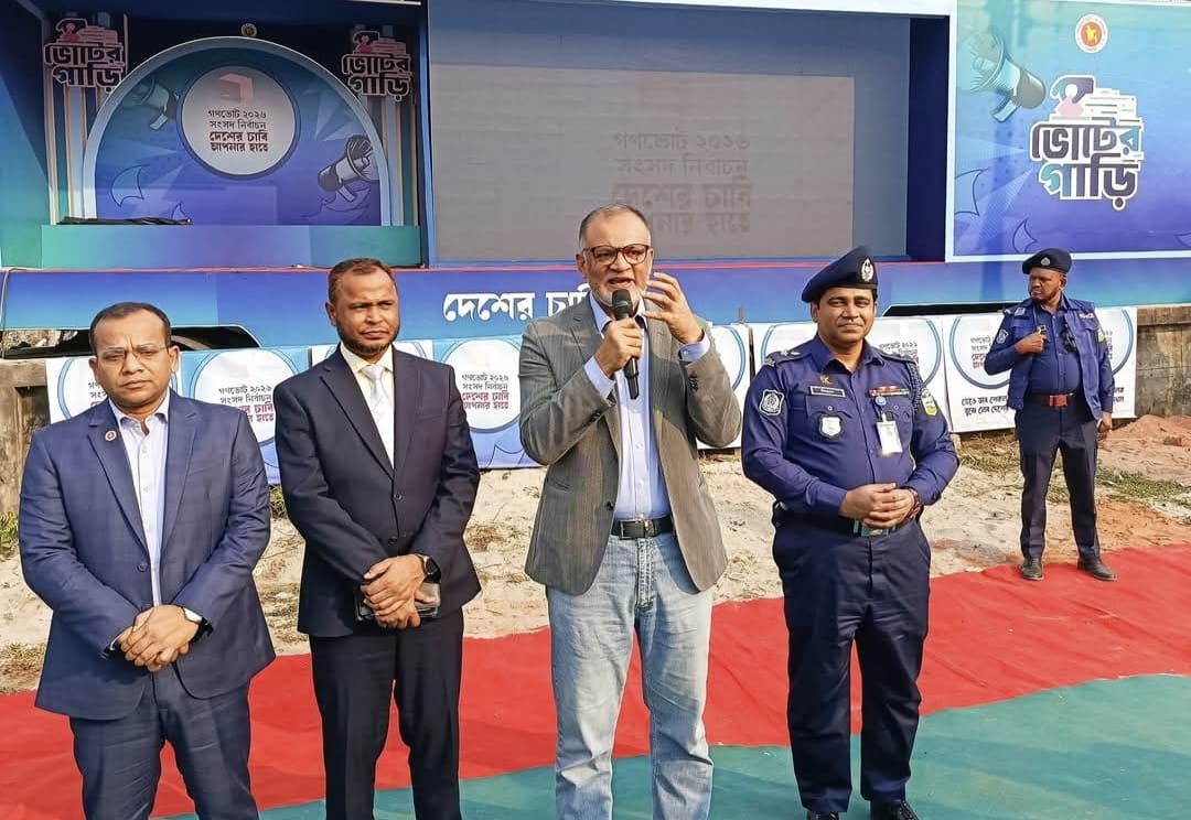 এসময় বাণিজ্য উপদেষ্টা বলেন, ভোটের গাড়ির উদ্দেশ্য হচ্ছে গণভোট ও সংসদীয় ভোট বিষয়ে নাগরিক সচেতনতা সৃষ্টি। বৈচিত্র্যময় জনগোষ্ঠীর এদেশে সকল মানুষের অধিকার যেন সমুন্নত থাকে, একতাবদ্ধ একটি জাতি প্রতিষ্ঠা করা যেন সম্ভব হয়, সে লক্ষ্যকে সামনে রেখেই গণভোট-২০২৬। দুর্বৃত্তায়নের মধ্য দিয়ে আর যেন কেউ ক্ষমতা কুক্ষিগত করতে না পারে, জনগণের অধিকার হরণ না করতে পারে, সেজন্য দেশের জনগণকে গণভোটে অংশগ্রহণ করতে হবে। নাগরিক অধিকার ও কাঙ্খিত রাষ্ট্র প্রতিষ্ঠায় সবাই যেন গণভোটে নিজের ভোটটি প্রদান করি। সংবিধানের পরিপূর্ণ রূপ দিতে সবাই যেন একতাবদ্ধ থাকি।