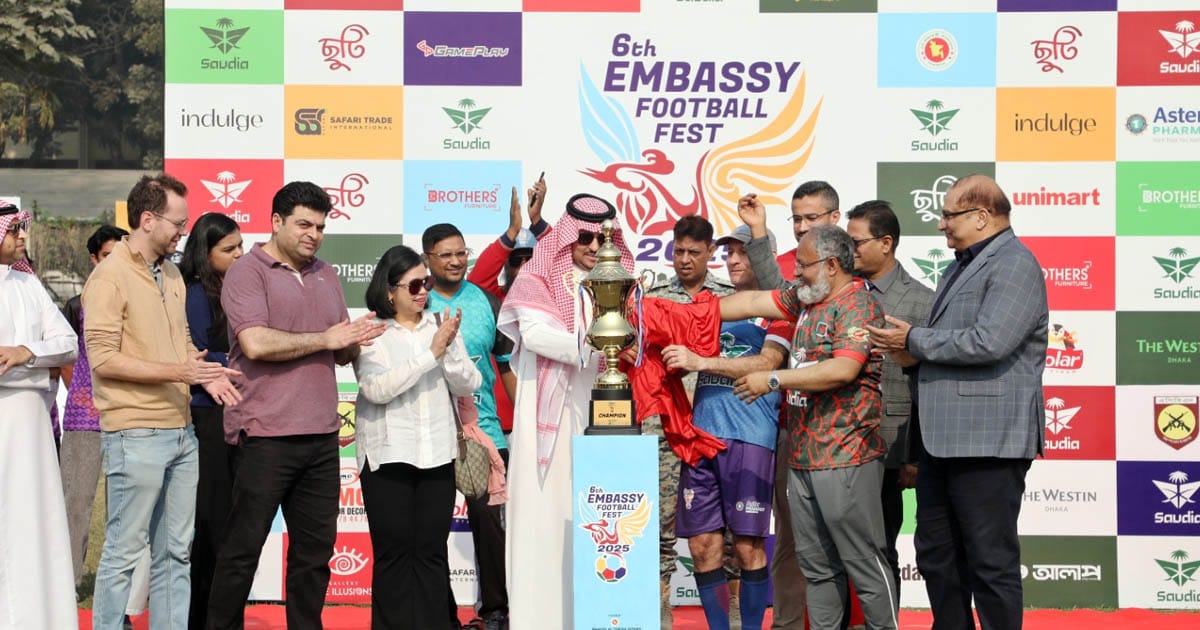 ক্রীড়া কূটনীতির অনন্য উদযাপনে কূটনৈতিক মিশন ও আন্তর্জাতিক সংস্থাগুলোর অংশগ্রহণে উদ্দীপনা, প্রতিযোগিতামূলক মনোভাব ও ঐক্যের বার্তা নিয়ে সফলভাবে শেষ হয়েছে অ্যাম্বাসি ফুটবল ফেস্ট ২০২৫-এর প্রথম দিন।