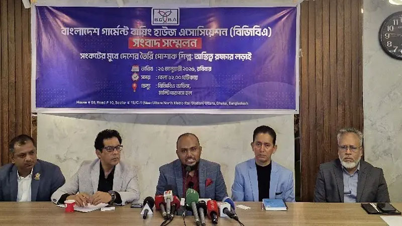 রবিবার (২৫ জানুয়ারি) দুপুরে রাজধানীর উত্তরায় বিজিবিএ কার্যালয়ে আয়োজিত সংবাদ সম্মেলনে এসব কথা বলেন সংগঠনটির সভাপতি মোহাম্মদ মোফাজ্জল হোসেন পাভেল। ১০ থেকে ৩০ কাউন্টের সুতা আমদানিতে বন্ডেড ওয়্যারহাউজ সুবিধা প্রত্যাহারের সিদ্ধান্ত বাতিলের দাবিতে ‘সংকটের মুখে দেশের তৈরি পোশাক শিল্প: অস্তিত্ব রক্ষার লড়াই’ শীর্ষক এ সংবাদ সম্মেলনের আয়োজন করে বিজিবিএ।