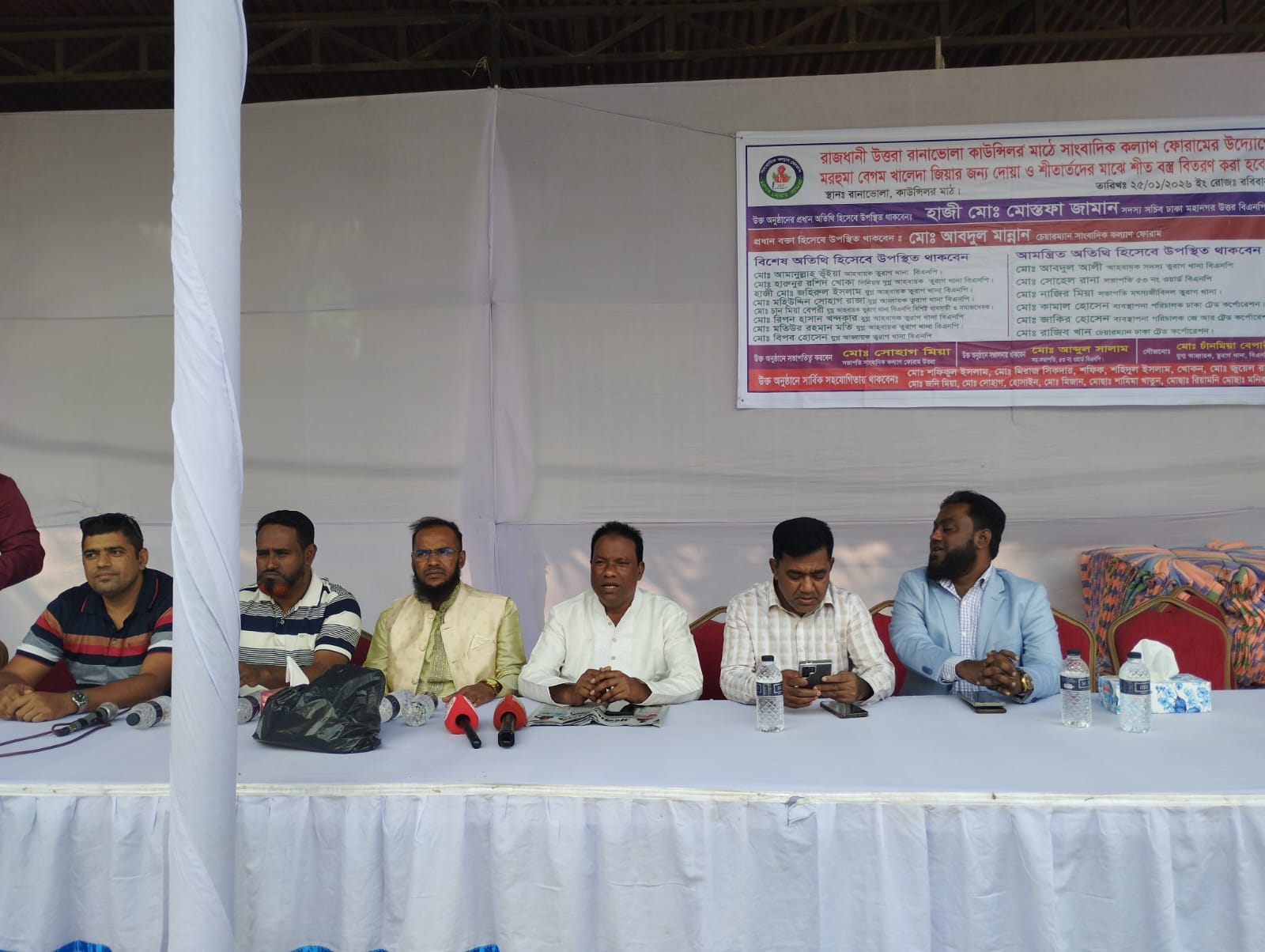 বিপ্লব চৌধুরী, স্টাফ রিপোর্টার: রাজধানীর উত্তরার রানা ভোলায় মেম্বার মাঠে সাংবাদিক কল্যাণ ফোরামের উদ্যোগে মরহুমা বেগম খালেদা জিয়ার রুহের মাগফিরাত কামনায় দোয়া মাহফিল ও শীতার্ত মানুষের মাঝে কম্বল বিতরণ করা হয়েছে।