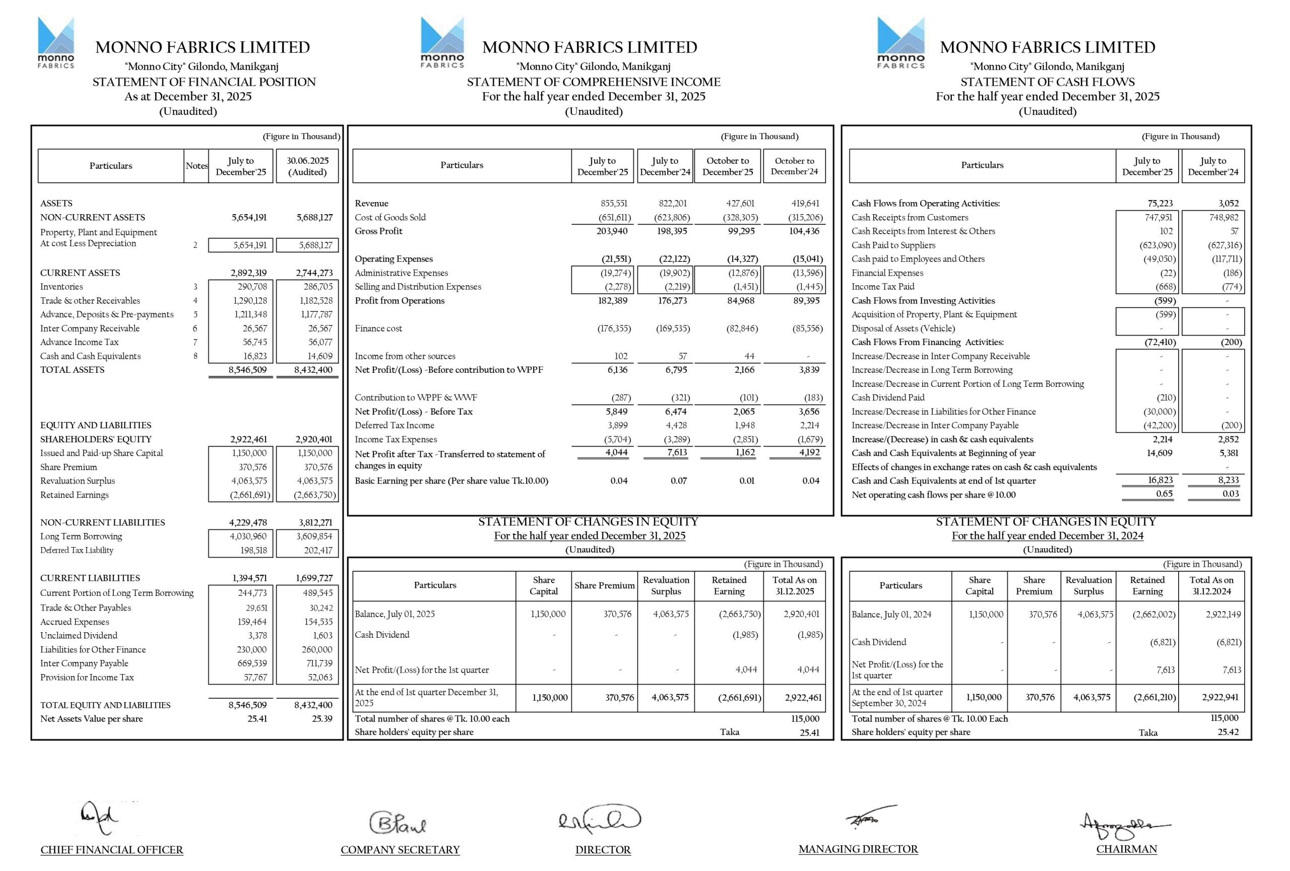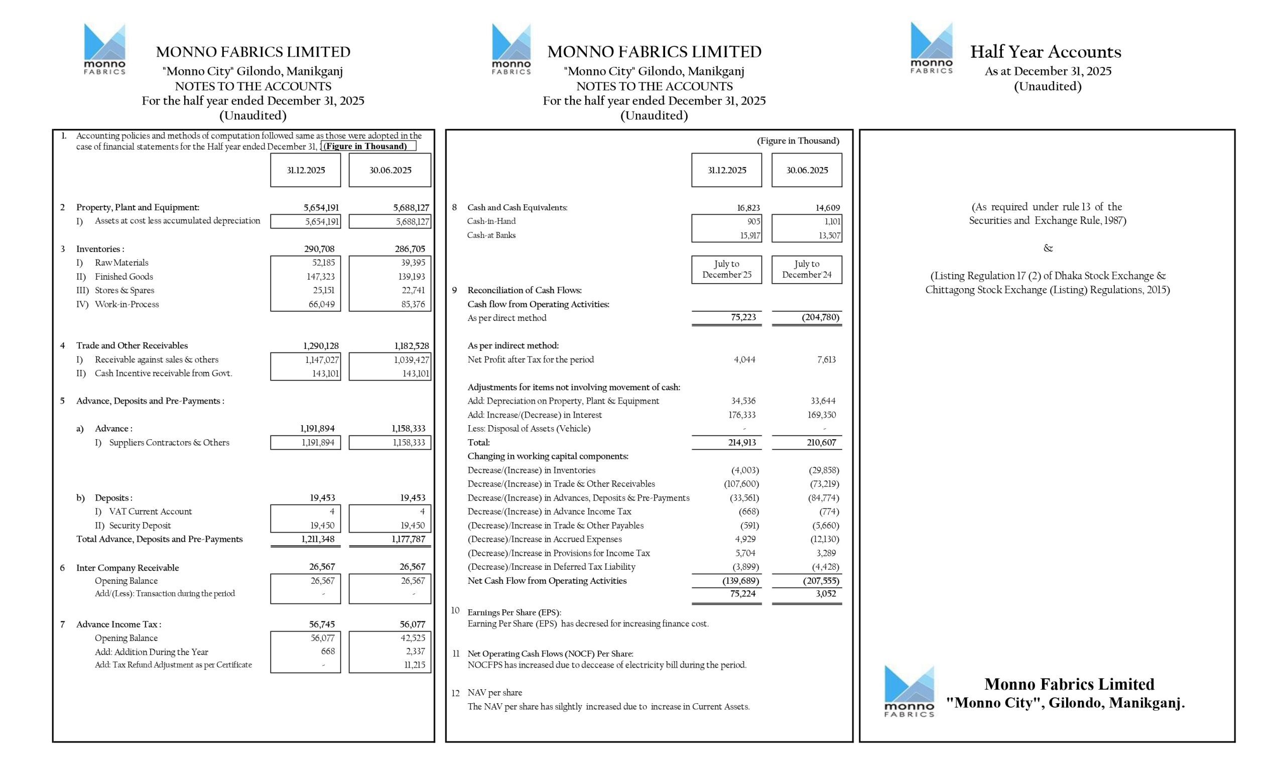 Price Sensitive Information (Q2) of Monno Fabrics Limited