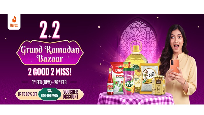 [ঢাকা, ৩১ জানুয়ারি ২০২৬]: পবিত্র রমজানকে সামনে রেখে বাংলাদেশে শুরু হয় এক উৎসবমুখর প্রস্তুতি। ইফতারের আয়োজন থেকে শুরু করে পরিবারের প্রয়োজনীয় কেনাকাটা সবকিছুতেই গ্রাহকরা এখন খোঁজেন সেরা মান ও সাশ্রয়ী দাম। গ্রাহকদের এই চাহিদাকে গুরুত্ব দিয়ে দারাজ বাংলাদেশ নিয়ে এসেছে ‘২.২ গ্র্যান্ড রমজান বাজার’। আগামী ১ ফেব্রুয়ারি রাত ৮টা থেকে শুরু হয়ে এই ক্যাম্পেইন চলবে ২৬ ফেব্রুয়ারি পর্যন্ত, যেখানে থাকবে নিত্যপ্রয়োজনীয় পণ্যে লো-প্রাইস, সর্বোচ্চ ৮০% ছাড়ের ফ্ল্যাশ সেল এবং আকর্ষণীয় সব ভাউচার।