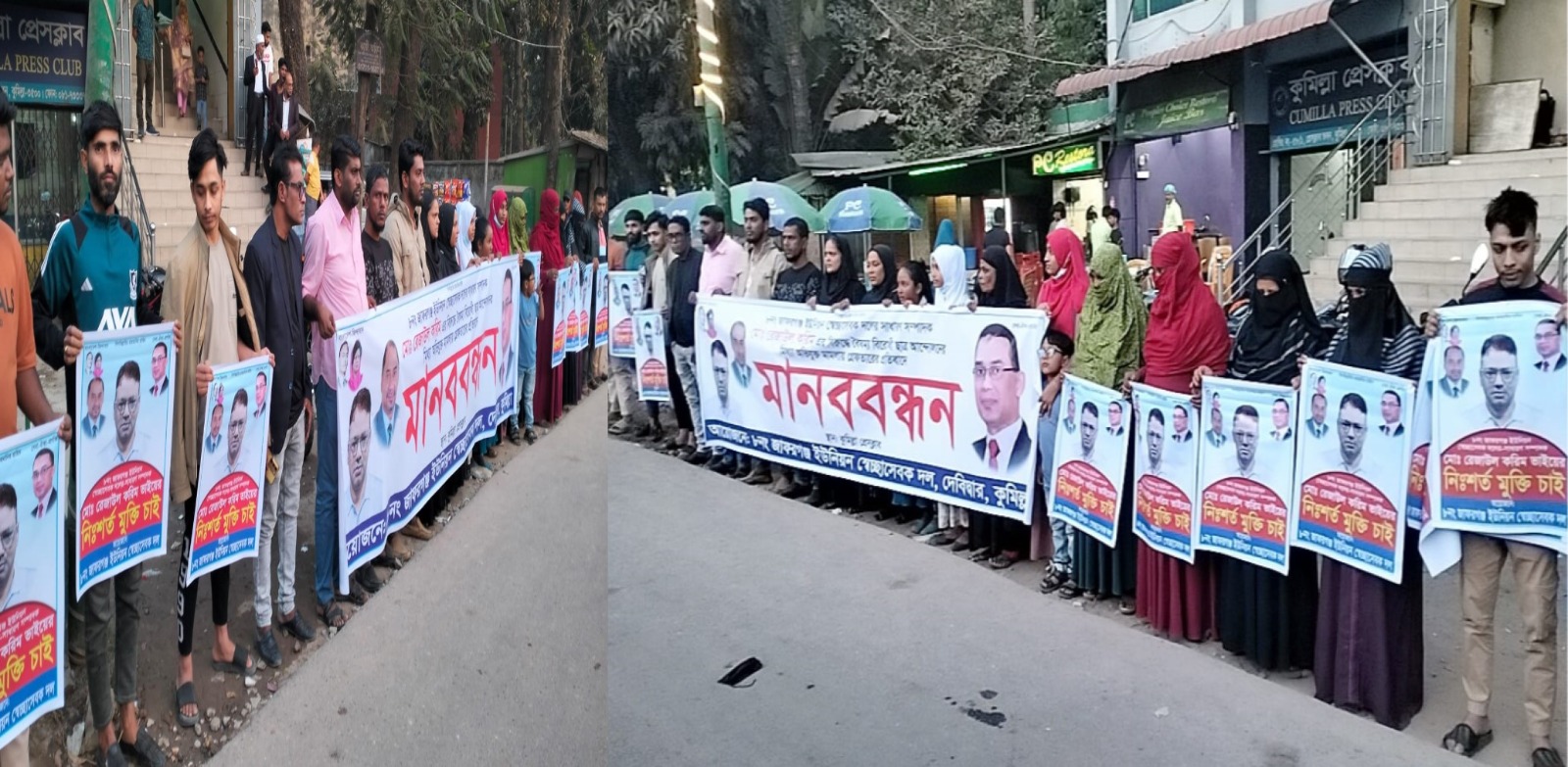 শনিবার (৩১ শে জানুয়ারি) বিকালে কুমিল্লা প্রেস ক্লাবের সামনে এ মানববন্ধনের আয়োজন করা হয়। এতে স্থানীয় বিএনপি, স্বেচ্ছাসেবক দলসহ বিভিন্ন অঙ্গসংগঠনের নেতাকর্মী ও সাধারণ মানুষ অংশগ্রহণ করেন।