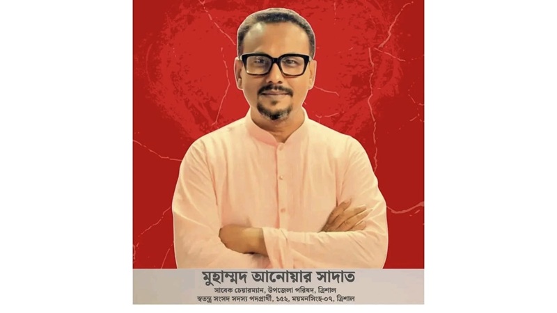 আমি মুহাম্মদ আনোয়ার সাদাত ত্রিশাল সংসদীয় আসনে একজন স্বতন্ত্র সংসদ সদস্য পদপ্রার্থী। রাজনীতির মাঠে আমি তরুণ, কিন্তু আমার স্বপ্ন ও সংকল্প সুদৃঢ়।