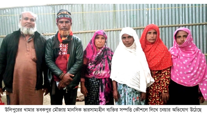 অভিযোগ সূত্রে জানা যায়, কুড়িগ্রামের উলিপুর উপজেলাধীন খামার তবকপুর হামির বাজার এলাকার বাসিন্দা মরহুম কমর উদ্দিন মুন্সি পুত্র আকবর আলী ব্যাপারী স্থানীয় ভাবে একজন পাট ব্যবসায়ী ছিলেন। তিনি জীবিত থাকাকালীন পাট ব্যবসার সাথে জরিত থেকে আর্থিক ভাবে জীবিকা নির্বাহ করে আসতেন। পাট ব্যবসায় আর্থিক মোনাফা লাভ করে আকবর আলী ব্যাপারী তার জীবদ্দশায় তবকপুর ইউনিয়নে ৫টি মৌজা যথাক্রমে- কাজলডাঙ্গা, বরুয়া তবকপুর, তবকপুর, খামার তবকপুর ও শ্রীবল্লভ মৌজায় বেশ কয়েক একর জমি তার নিজ নামে ও পরিবারের সদস্যদের নামে ক্রয় করেন। ১৯৮৮ সালের বন্যায় আকবর আলী ব্যাপারী তার ক্রয়কৃত পাট গোডাউনে রক্ষিত অবস্থায় পানিতে ডুবে প্রায় আড়াই হাজার মণ পাট সম্পূর্ণ পচে নষ্ট হয়ে যায়। এ কারণে পাট ব্যবসায়ী আকবর আলী ব্যাপারী চরম আর্থিক লোকসানের কারণে মানসিক আঘাত প্রাপ্ত হন। পরবর্তীতে তিনি মানসিক ভারসাম্য হারানোর কারণে চিকিৎসাধীন অবস্থায় বেশ কয়েক বছর পরিবারের সাথে থেকে মৃত্যুবরণ করেন। ১৯৮৮ সালে মানসিক ভারসাম্য হারানো আকবর আলী ব্যাপারীর চিকিৎসাধীন অবস্থায় পরিবার পরিচালনার জন্য তাহার নামীয় সম্পত্তি বিক্রয়ের উদ্দেশ্যে পরিবারের সদস্যরা সিদ্ধান্ত গ্রহণ করলে তৎকালীন তবকপুর ইউনিয়ন পরিষদের চেয়ারম্যান মাহমুদুর রহমান বকুল এর কাছে লিখিত ভাবে আবেদন করা হয়। তাহার সুপারিশক্রমে কুড়িগ্রাম সিভিল সার্জন বরাবর বিষয়টি তুলে ধরলে কিছু সময় পর সিভিল সার্জনের নির্দেশক্রমে উক্ত আকবর আলী ব্যাপারীর বিষয়ে মেডিকেল বোর্ড গঠন করা হয়। তৎকালীন সময়ে কুড়িগ্রাম সদর হাসপাতালের কর্মরত জুনিয়র কনসালটেন্ট (অর্থো) সার্জারী ডাঃ মোঃ আলাউদ্দিন আল আজাদ, জুনিয়র কনসালটেন্ট গাইনী ডাঃ অমিত কুমার বসু ও সিনিয়র কনসালটেন্ট মেডিসিন ডাঃ মোঃ খালিদ হাসান এর সমন্বয়ে গঠিত মেডিকেল বোর্ড সিদ্ধান্তক্রমে একমত হয়ে মোঃ আকবর আলী (৬০) কে মানসিক ভারসাম্যহীন রোগী হিসেবে ঘোষণা করেন। উক্ত মানসিক ভারসাম্যহীন রোগী আকবর আলীর ওয়ারিশগণ যথাক্রমে- তাহার স্ত্রী মোছাঃ জোবেদা বেগম, তাহার পুত্র সাখাওয়াত হোসেন, তাহার কন্যা আঁকিতারা বেগম, শাহানাজ খাতুন, শাহিদা খাতুন ও আনিচা খাতুন বর্তমানে জীবিত আছেন। উল্লেখ্য মরহুম আকবর আলী ব্যাপারীর কন্যা আনিচা খাতুন জন্ম সূত্রে মানসিক বোবা প্রতিবন্ধী। সম্প্রতি সময়ে মানসিক ভারসাম্যহীন আকবর আলী জীবিত থাকাকালীন সময়ে প্রতিবেশী কর্তৃক তাহার নামে সম্পাদিত কয়েকটি দলিল উপস্থাপিত করেন। যে সময় দলিল সম্পাদিত হয়েছে ওই সময়ে তিনি মানসিক ভারসাম্যহীন ছিলেন। আকবর আলী ব্যাপারীর ওয়ারিশগণ জানান, তাহাদের পিতা জীবিত থাকাকালীন প্রতিবেশীরা তাহার চিকিৎসার জন্য বাহিরে নিয়ে গিয়ে দলি