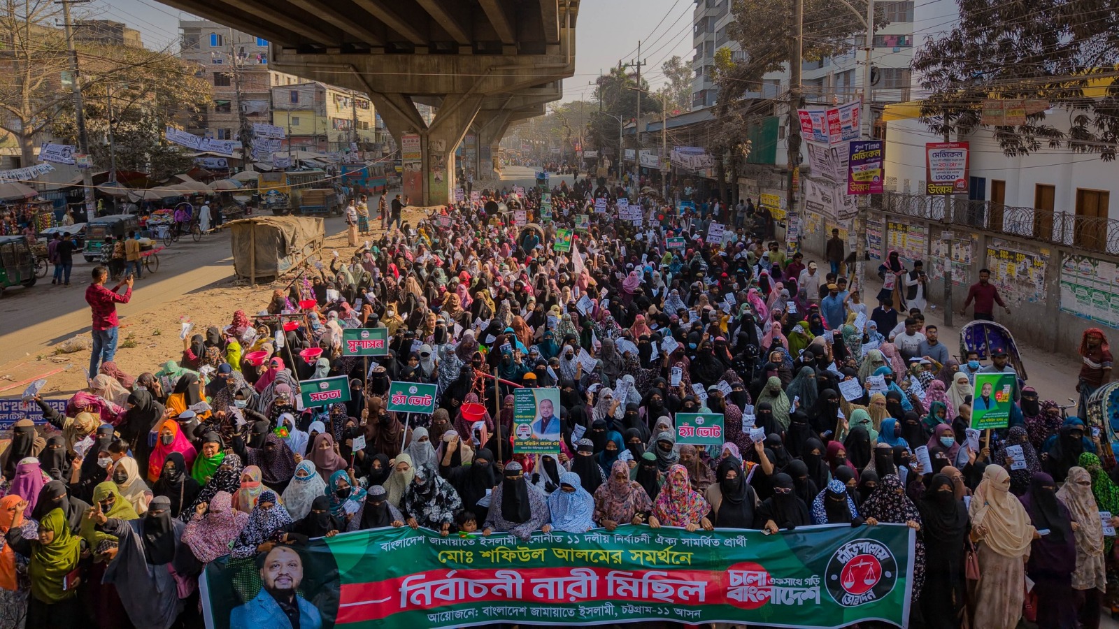 রোববার (৮ ফেব্রুয়ারি) দুপুরে দাঁড়িপাল্লা প্রতীকে ভোট চেয়ে বন্দরটিলা আলী শাহ মসজিদের সামনে থেকে মিছিলটি শুরু হয়ে নগরীর গুরুত্বপূর্ণ সড়ক প্রদক্ষিণ করে ইপিজেড মোড়ে গিয়ে শেষ হয়। এতে বন্দর-পতেঙ্গা এলাকার বিপুল সংখ্যক নারী অংশগ্রহণ করেন।