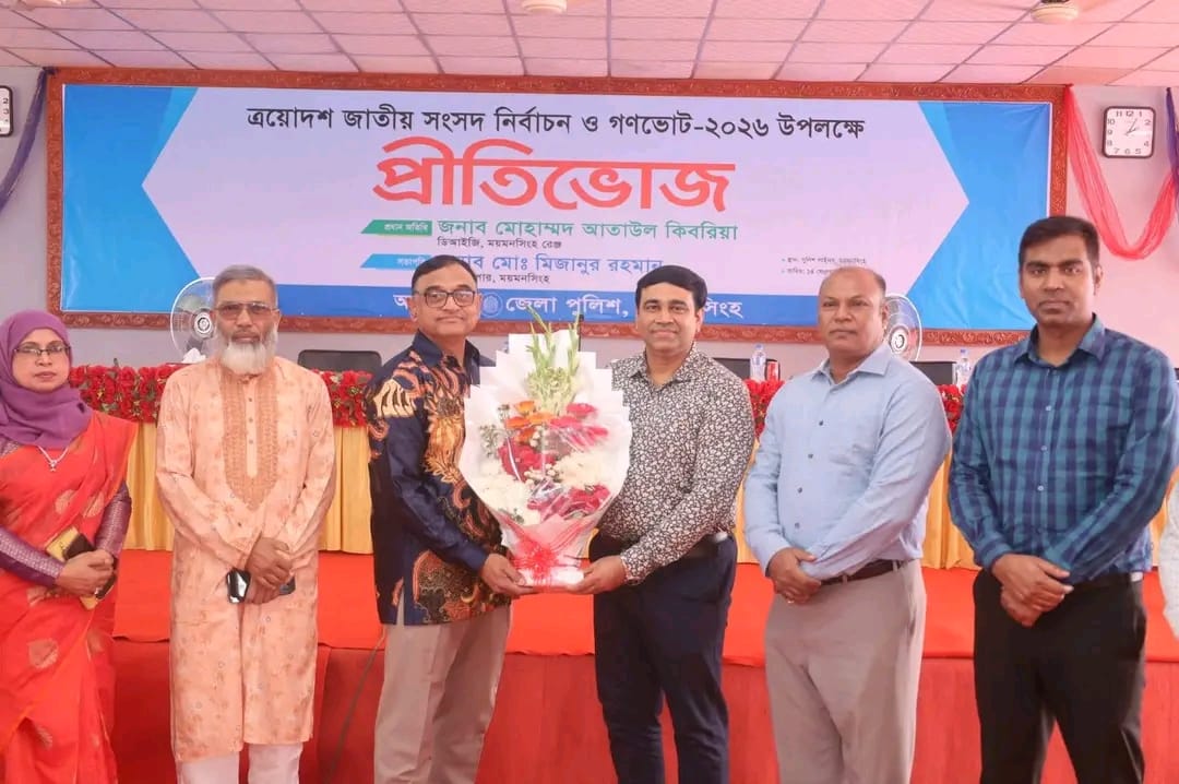 মকবুল হোসেন, ময়মনসিংহ জেলা প্রতিনিধি: ময়মনসিংহ জেলা পুলিশের আয়োজনে ময়মনসিংহ জেলার পুলিশ লাইন্সের শহীদ বীর মুক্তিযোদ্ধা পুলিশ সুপার মুন্সী কবির উদ্দিন আহমেদ মাল্টিপারপাস শেড (কল্যাণ শেড) এ জেলা পুলিশের পুলিশ সুপার মোঃ মিজানুর রহমান সভাপতিত্বে ত্রয়োদশ জাতীয় সংসদ নির্বাচন ও গণভোট-২০২৬ উপলক্ষে আজ ১৪ ফেব্রুয়ারি শনিবার দুপুর দুইটা ফোর্সের প্রীতিভোজের আয়োজন করা হয়।