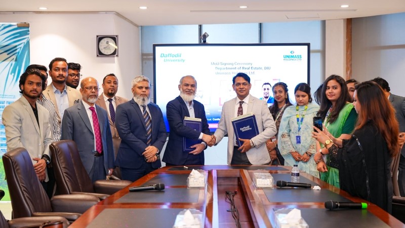 বাংলাদেশের রিয়েল এস্টেট খাতে একাডেমিক শিক্ষা ও বাস্তব প্রয়োগের মধ্যে সেতুবন্ধন গড়ে তোলার লক্ষ্যে ইউনিমাস হোল্ডিংস লিমিটেড ও ড্যাফোডিল ইন্টারন্যাশনাল ইউনিভার্সিটির (ডিআইইউ) রিয়েল এস্টেট ডিপার্টমেন্টের মধ্যে একটি সমঝোতা স্মারক (এমওইউ) স্বাক্ষর অনুষ্ঠিত হয়। সম্প্রতি বিশ্ববিদ্যালয়ের ইন্টারন্যাশনাল কনফারেন্স রুমে এই আয়োজনটি সফলভাবে অনুষ্ঠিত হয়।