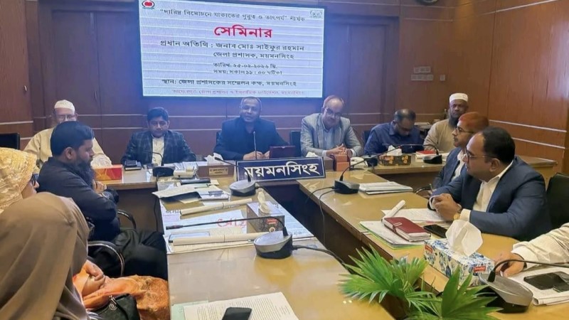 মকবুল হোসেন, ময়মনসিংহ জেলা প্রতিনিধি: ২০২৫-২৬ অর্থবছরে সরকারি যাকাত ফান্ডে যাকাত সংগ্রহের লক্ষ্যে জেলা পর্যায়ে ' দারিদ্র বিমোচনে যাকাতের গুরুত্ব ও তাৎপর্য' শীর্ষক এক সেমিনার অনুষ্ঠিত হয়। ২৫ ফেব্রুয়ারি বুধবার ময়মনসিংহ জেলা প্রশাসকের সম্মেলন কক্ষে আয়োজিত এ সেমিনারে প্রধান অতিথি হিসেবে উপস্থিত ছিলেন ময়মনসিংহের জেলা প্রশাসক মোঃ সাইফুর রহমান, সভাপতিত্ব করেন ইসলামিক ফাউন্ডেশনের পরিচালক মোঃ হাবেজ আহমেদ। ইসলামিক ফাউন্ডেশন আয়োজিত এ সভায় অতিরিক্ত জেলা প্রশাসক (সার্বিক) রেজা মোঃ গোলাম মাসুম প্রধান , সিভিল সার্জন (ভারপ্রাপ্ত) ডা. ফয়সল আহমেদ, স্থানীয় আলেম-উলামাসহ ময়মনসিংহের জেলা পর্যায়ের দপ্তরপ্রধানগণ উপস্থিত ছিলেন।