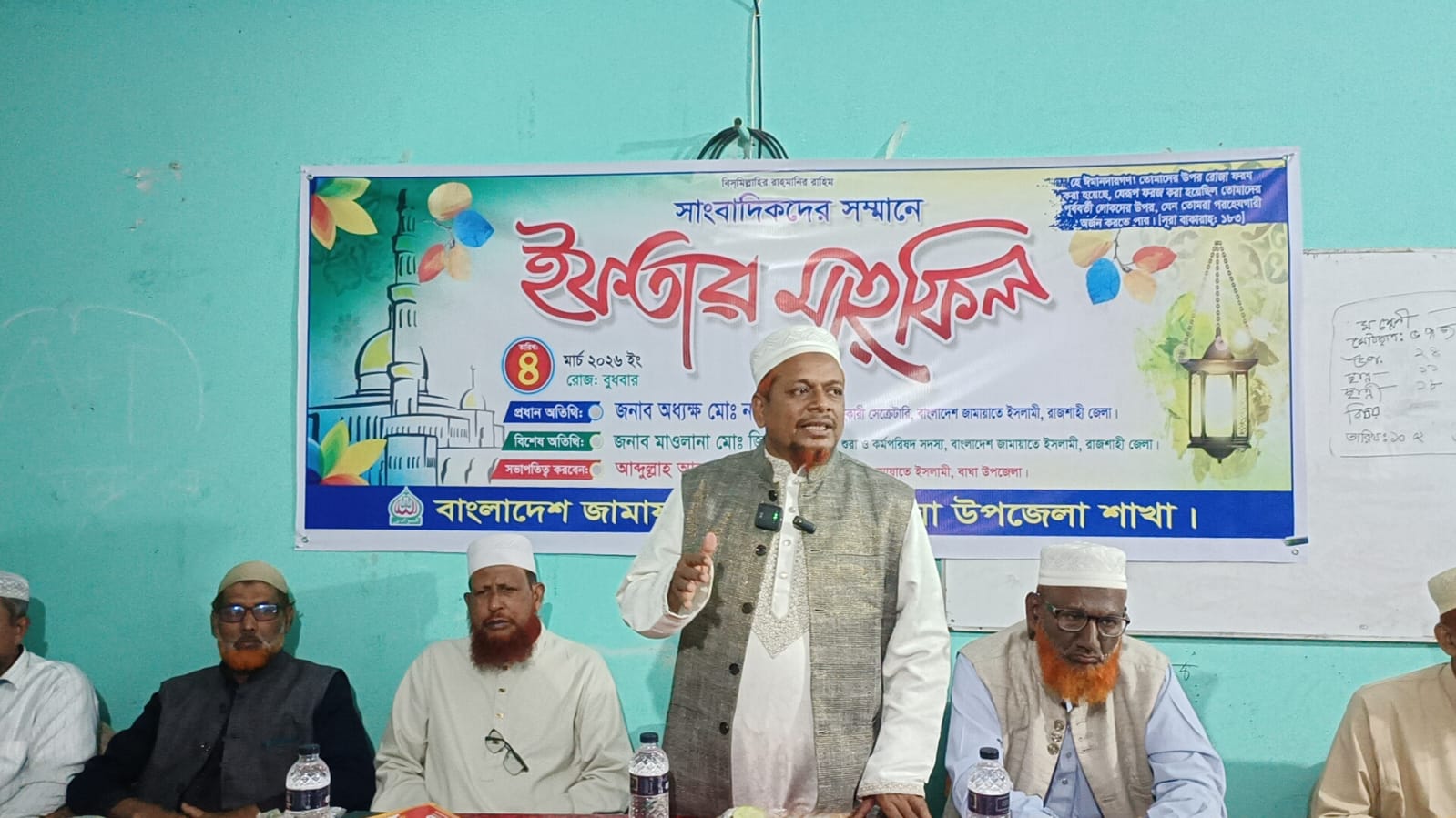 অনুষ্ঠানে সভাপতিত্ব করেন বাংলাদেশ জামায়াতে ইসলামী বাঘা উপজেলা আমীর আব্দুল্লাহ আল মামুন নুহু। তিনি সাংবাদিকদের সঙ্গে মতবিনিময়কালে স্থানীয় উন্নয়ন, সামাজিক সমস্যা ও গণমানুষের প্রত্যাশা নিয়ে আলোচনা করেন এবং সত্য প্রকাশে সাংবাদিকদের সাহসী ভূমিকার প্রশংসা করেন।