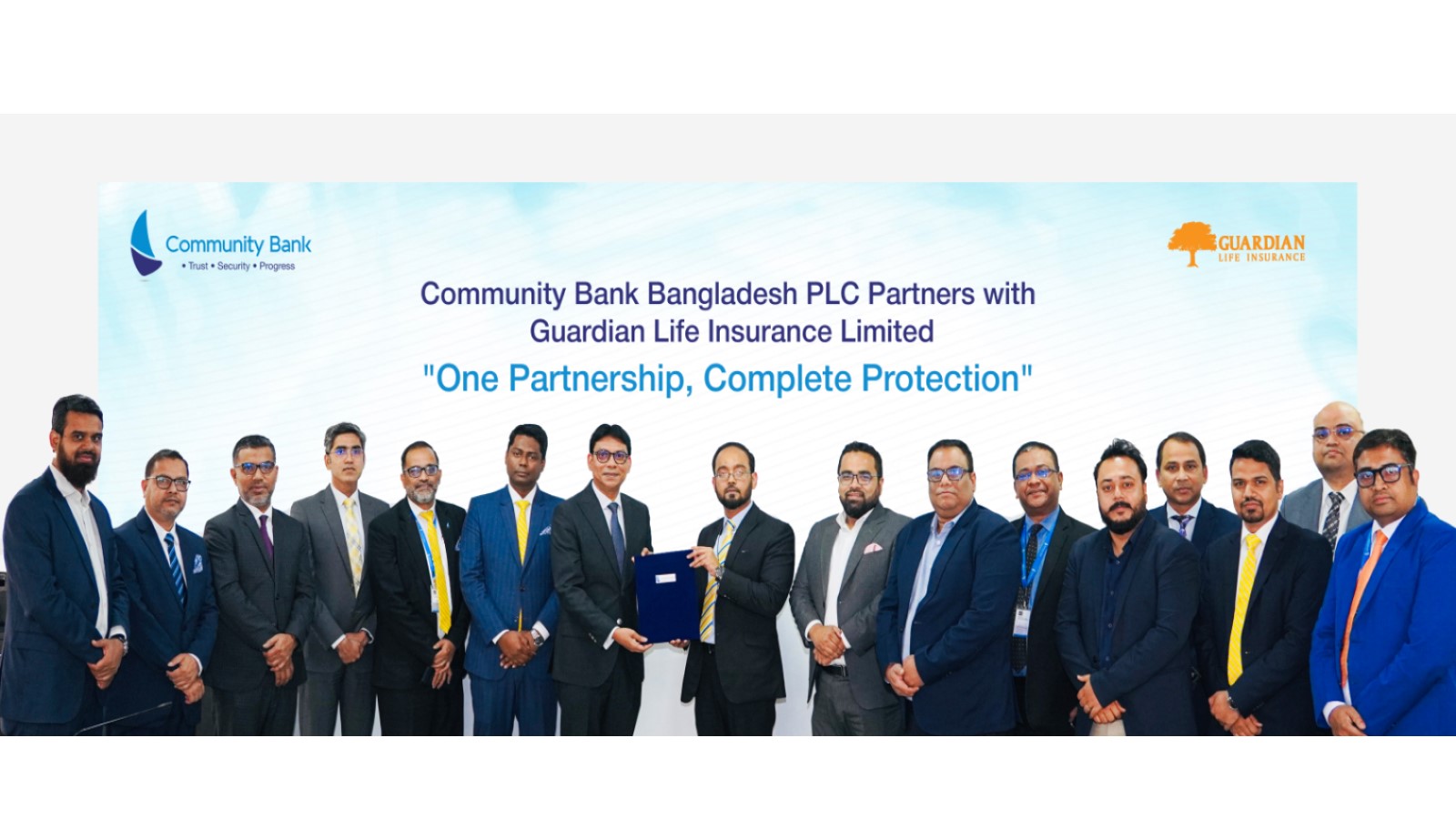 কমিউনিটি ব্যাংক বাংলাদেশ পিএলসি’র প্রধান কার্যালয়ে আয়োজিত এক অনুষ্ঠানে ব্যাংকের ব্যবস্থাপনা পরিচালক (চলতি দায়িত্ব) কিমিয়া সাআদত এবং গার্ডিয়ান লাইফ ইন্স্যুরেন্স লিমিটেডের প্রধান নির্বাহী কর্মকর্তা শেখ রাকিবুল করিম, এফসিএ নিজ নিজ প্রতিষ্ঠানের পক্ষে চুক্তিতে স্বাক্ষর করেন।
