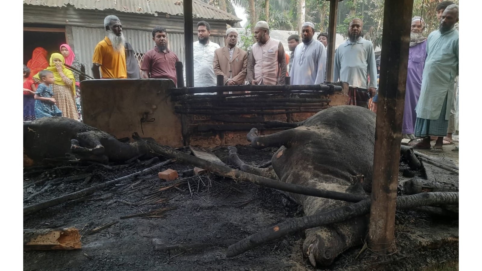 এতে আসাদুলের ২ টি পুরে ছাই হয়ে যায় এ ছাড়াও গোয়াল ঘর, ও ঘরের মধ্যে থাকা মালামালসহ প্রায় ৪ লক্ষাধিক টাকার ক্ষতি সাধিত হয়েছে ।