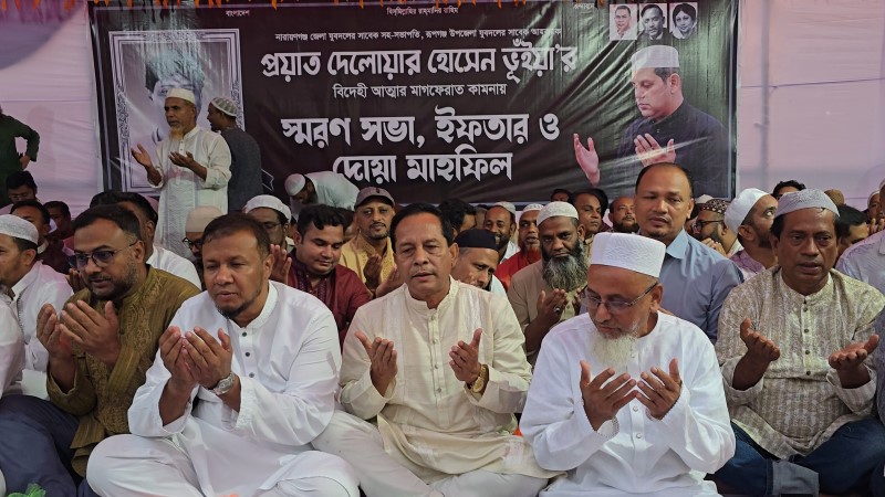 শাকিল আহম্মেদ, স্টাফ রিপোর্টার (নারায়ণগঞ্জ): নারায়ণগঞ্জের রূপগঞ্জে জেলা যুবদলের সাবেক সহ সভাপতি ও উপজেলা যুবদলের সাবেক আহ্বায়ক প্রয়াত দেলোয়ার হোসেন ভূঁইয়া`র বিদেহী আত্মার মাগফেরাত কামনায় স্মরণ সভা, দোয়া মাহফিল ও ইফতার অনুষ্ঠিত হয়েছে। শুক্রবার বিকেলে উপজেলার ভূলতা ইউনিয়নের পাচাইখা এলাকায় এ স্মরণ সভা, দোয়া মাহফিল ও ইফতার অনুষ্ঠিত হয়।স্মরণ সভা, দোয়া মাহফিলে নারায়ণগঞ্জ জেলা ছাত্রদলের সাবেক সভাপতি নাহিদ হাসান ভূঁইয়া সভাপতিত্বে ও উপজেলা ছাত্রদলের সাবেক সদস্য সচিব মাসুম বিল্লাহ`র সঞ্চালনায় উপস্থিত ছিলেন রূপগঞ্জ উপজেলা বিএনপির সভাপতি এডঃ মাহফুজুর রহমান হুমায়ূন, সাধারণ সম্পাদক বাছির উদ্দিন বাচ্চু, সহ-সভাপতি আনোয়ার সাদাত সায়েম, সৌদি আরব পূর্বাঞ্চল যুবদলের সভাপতি মোফাজ্জল হোসেন স্বপন,তারাব পৌর বিএনপির সভাপতি তাসফিক হোসেন ওসমান,কাঞ্চন পৌর বিএনপির সাধারণ সম্পাদক মফিকুল ইসলাম খান, ভূলতা ইউনিয়ন বিএনপির সভাপতি আব্বাস উদ্দিন ভূঁইয়া, গোলাকান্দাইল ইউনিয়ন বিএনপির সভাপতি আব্দুল আজিজ মাস্টার, দাউদপুর ইউনিয়ন বিএনপির সভাপতি এডঃ হেলাল উদ্দিন সরকার, শফিকুল ইসলাম ভূঁইয়া,কেন্দ্রীয় স্বেচ্ছাসেবক দলের সদস্য শিপলু ভূঁইয়া, জেলা স্বেচ্ছাসেবক দলের আহ্বায়ক মাহাবুব রহমান, সিনিয়র যুগ্ম আহ্বায়ক রফিকুল ইসলাম রফিক, সাবেক যুগ্ম সাধারণ সম্পাদক সালাউদ্দিন দেওয়ান, তারাব পৌর যুবদলের আহ্বায়ক আফজাল কবির, রূপগঞ্জ উপজেলা যুবদলের ভারপ্রাপ্ত আহ্বায়ক আমিরুল ইসলাম প্রিন্স, যুগ্ম আহ্বায়ক আরিফুজ্জামান ইমন, কেন্দ্রীয় ছাত্রদলের সাবেক যুগ্ম সাধারণ সম্পাদক বায়েজিদ প্রধান, নারায়ণগঞ্জ জেলা ছাত্রদলের সাবেক সিনিয়র যুগ্ম সম্পাদক ইসমাইল মামুন, নারায়ণগঞ্জ জেলা ছাত্রদলের সাবেক সহ সভাপতি শফিকুল ইসলাম সফিক, উপজেলা ছাত্রদের সাবেক যুগ্ম আহ্বায়ক আশরাফুল ইসলাম হৃদয়, কামরুল হাসান, আরিফ বিল্লাহ আলিফ, তারাব পৌর ছাত্রদলের সাবেক যুগ্ম আহ্বায়ক মাজহারুল ইসলাম রাজিব, সরকারি মুড়াপাড়া কলেজ শাখা ছাত্রদলের সাবেক আহ্বায়ক শাওন ভূঁইয়া শাকিল প্রমুখ।