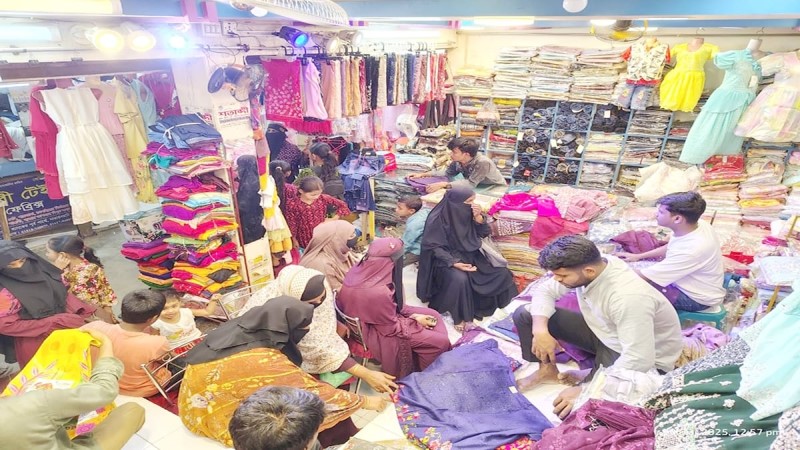 লিটন পাঠান, হবিগঞ্জ প্রতিনিধি: হবিগঞ্জের মাধবপুর উপজেলার বিভিন্ন এলাকার মার্কেট গুলোতে নতুন পণ্যের পসরা। ক্রেতাও রয়েছে বেশ। শেষ সময়ে জমে উঠেছে ঈদের কেনাকাটা। এর ফলে বাজারে বাড়তি চাহিদা তৈরি হয়। আর এই চাহিদাকে পুঁজি করে বাজারে এক শ্রেণির অসাধু ব্যবসায়ী নিজেরা স্টিকার লাগিয়ে। অতি মুনাফা করতে মরিয়া হয়ে উঠেছে। শনিবার (১৪-মার্চ)২০২৬ইং ছুটির দিন হওয়ায়, পাল গার্মেন্টস, মীনা গার্মেন্টস, নরেশ গার্মেন্টস, সুরেশ প্লিজ, রাজীব ফ্যাশন, রনি জনি গার্মেন্টস, গৌরী বস্ত্রালয়, সৌভাগ্য বস্ত্রালয়, বিসমিল্লাহ বস্ত্রালয়, শেখ মেনশন, চৌধুরী শপিং সেন্টারসহ নানা মার্কেটে উপচে পড়া ভিড় দেখা গেছে।