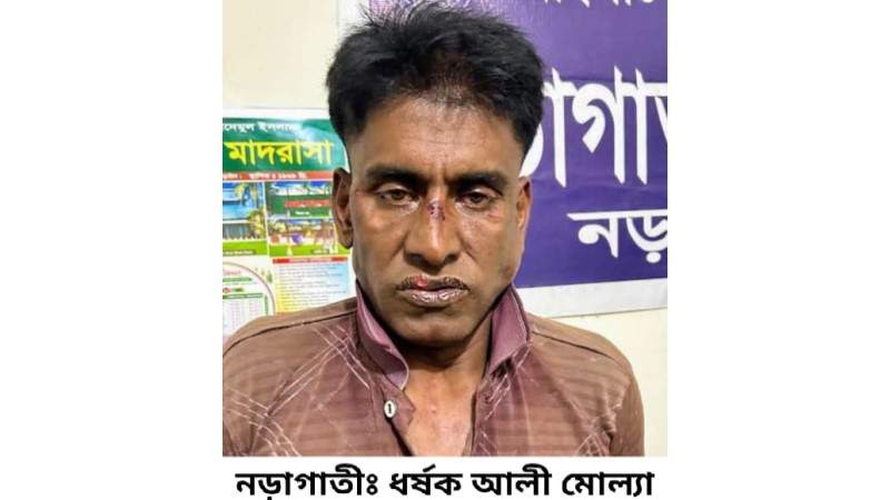 স্থানীয় সূত্রে জানা যায়, মাথাভাঙা গুচ্ছগ্রামের মৃত দুদু মোল্যার ছেলে ধর্ষক আলী মোল্যা (৫০)কে এলাকাবাসী আটক করে পুলিশের নিকট হস্তান্তর করে। ভুক্তভোগী স্থানীয় একটি সরকারি প্রাথমিক বিদ্যালয়ের তৃতীয় শ্রেণির ছাত্রী। এ ঘটনায় ভুক্তভোগীর পিতা বাদী হয়ে নড়াগাতী থানায় একটি ধর্ষন মামলা দায়ের করেছেন। মামলা নং- ১০/১৪।
