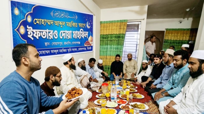সিলেট প্রতিনিধি: সিলেটের গোলাপগঞ্জ উপজেলার ২নং সদর ইউনিয়নের গোয়াসপুর গ্রামের বিশিষ্ট্য সমাজহিতৈষী, সাদা মনের মানুষ আলহাজ্ব মোহাম্মদ আব্দুল মছব্বির সাহেব এর ষষ্ঠ মৃত্যুবার্ষিকী উপলক্ষে আয়োজিত ইফতার ও দোয়া মাহফিল সম্পন্ন হয়েছে। বুধবার (১৮ মার্চ ২০২৬ইং) মরহুমের নিজ বাসভবন 'লস্কর বাড়ি'র ইসলাম হাউসে তাঁর সন্তানদের উদ্যোগে এই আবেগঘন মাহফিলের আয়োজন করা হয়।