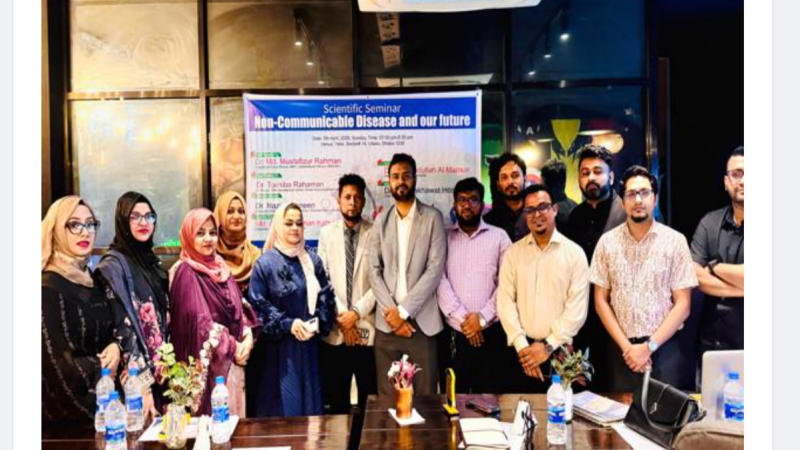 নন-কমিউনিকেবল ডিজিজ (এনসিডি) সম্পর্কে সচেতনতা বৃদ্ধি ও ভবিষ্যৎ করণীয় নির্ধারণে রাজধানীতে অনুষ্ঠিত হয়েছে 'নন কমিউনিকেবল ডিজিজ অ্যান্ড আওয়ার ফিউচার' শীর্ষক একটি বৈজ্ঞানিক সেমিনার। উত্তরায় আয়োজিত এ সেমিনারে সভাপতিত্ব করেন বাংলাদেশ নন কমিউনিকেবল ডিজিজ অ্যাওয়ারনেস ফাউন্ডেশনের চেয়ারম্যান ডা. মো. আব্দুল্লাহ আল মামুন। প্রধান অতিথি হিসেবে উপস্থিত ছিলেন মেডিসিন বিশেষজ্ঞ ডা. মো. মোস্তাফিজুর রহমান। সেমিনারে চিফ স্পিকার হিসেবে নন-কমিউনিকেবল শিশু নিউরোলজি রোগ নিয়ে গভীর, তথ্যভিত্তিক ও মানবিক দৃষ্টিভঙ্গিতে উপস্থাপনা করেন ডা. তোশিবা রহমান। তার বক্তব্যে প্রতিরোধ, সচেতনতা এবং ভবিষ্যৎ প্রজন্মের সুস্থতা নিশ্চিতকরণে কার্যকর দিকনির্দেশনা উঠে আসে, যা উপস্থিত চিকিৎসকদের মুগ্ধ করে। ফাউন্ডেশনের ভাইস চেয়ারম্যান ডা. শাখাওয়াত হোসেনের সঞ্চালনায় সেমিনারে বিশেষ অতিথি হিসেবে উপস্থিত ছিলেন শহীদ মনসুর আলী মেডিকেল কলেজের সহযোগী অধ্যাপক ডা. নাজিয়া নাজনীন। আরও বক্তব্য দেন হৃদরোগ বিশেষজ্ঞ ডা. মাসুদ রানা, ত্বক বিশেষজ্ঞ ডা. মরিয়ম বেগম, কিডনি বিশেষজ্ঞ ডা. আবেদা কুদসী নওসি, ডেন্টাল সার্জন ডা. মারিয়া ফেরদৌস এবং বিএনজিডিএর প্রেসিডেন্ট ডা. ফারহান সাদিক খান। সেমিনারে দেশের বিভিন্ন প্রতিষ্ঠানের অর্ধশতাধিক চিকিৎসক অংশগ্রহণ করেন। উল্লেখ্য, বাংলাদেশ নন কমিউনিকেবল ডিজিজ অ্যাওয়ারনেস ফাউন্ডেশন ২০১৮ সাল থেকে নন-কমিউনিকেবল রোগ সম্পর্কে জনসচেতনতা বৃদ্ধিতে কাজ করে যাচ্ছে।