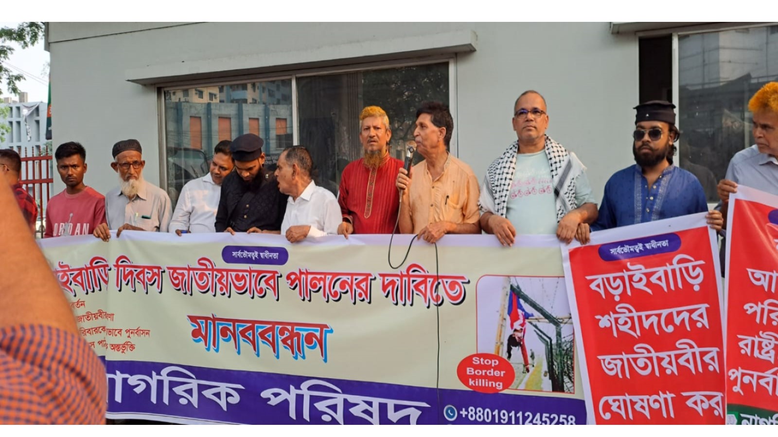 বড়াইবাড়ি দিবস জাতীয়ভাবে উদযাপনের দাবিতে অনুষ্ঠিত মানববন্ধন থেকে নাগরিক পরিষদের আহ্বায়ক মোহাম্মদ শামসুদ্দীন অনতিবিলম্বে বিডিআর নাম পুনঃপ্রবর্তনের দাবি জানিয়েছেন।