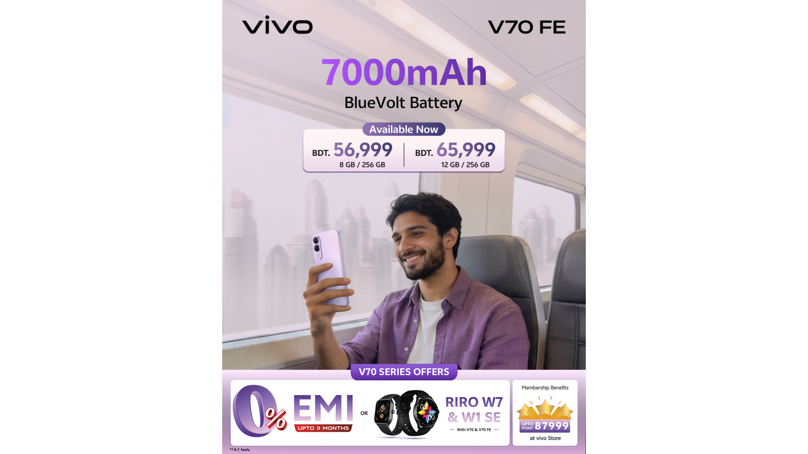 একই সিরিজে আরও রয়েছে ফ্ল্যাগশিপ ভি৭০, যাতে আছে ৫০ মেগাপিক্সেল জাইস সুপার টেলিফটো ক্যামেরা, উন্নত এআই প্রযুক্তি এবং ৪কে ৬০ এফপিএস ভিডিও সুবিধা।