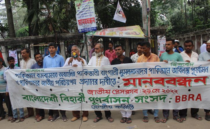 নিজস্ব প্রতিবেদক: আজ (২৯-০৫-২২ রবিবার) দুপুরে জাতীয় প্রেসক্লাবের সামনে "পাকিস্তানে বসবাসরত বাঙ্গালী মুসলমানদের অবিলম্বে পুনর্বাসন ও সেদেশের জাতীয় পরিচয়পত্র প্রদানের দাবীতে" বাংলাদেশী বিহারী পুনর্বাসন সংসদ () মানববন্ধন কর্মসূচি পালন করেছে। সংগঠনের কেন্দ্রীয় সভাপতি মোঃ কাওসার পারভেজ তুলু মানববন্ধনে সভাপতিত্ব করেন। মানববন্ধনে প্রধান অতিথি ছিলেন ন্যাশনাল আওয়ামী পার্টি বাংলাদেশ (ন্যাপ বাংলাদেশ) এর মহাসচিব জননেতা নেয়াজ আহমদ খান।