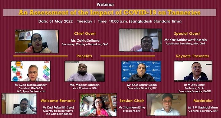 মঙ্গলবার (৩১ মে) দ্য এশিয়া ফাউন্ডেশন, অর্থনৈতিক রিপোর্টারদের সংগঠন ইকোনোমিক রিপোর্টার্স ফোরাম (ইআরএফ) ও গবেষণা সংস্থা রিসার্চ অ্যান্ড পলিসি ইন্ট্রিগ্রেশন ফর ডেভেলপমেন্টের (র্যাপিড) যৌথ উদ্যোগে আয়োজিত এক ওয়েবিনারের বক্তারা এ কথা বলেন। ট্যানারি শিল্পে করোনার প্রভাব বিষয়ে র্যাপিড একটি গবেষণা করেছে। ওয়েবিনারে গবেষনার ফলাফল তুলে ধরা হয়।