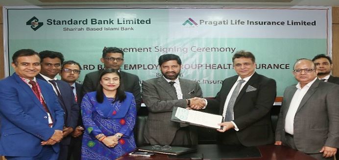 স্ট্যান্ডার্ড ব্যাংক-এর কর্মকর্তা ও কর্মীদের জন্য গ্রুপ হেলথ ইন্স্যুরেন্স প্রদানের লক্ষ্যে স্ট্যান্ডার্ড ব্যাংক লিমিটেড ও প্রগতি লাইফ ইন্স্যুরেন্স লিমিটেড-এর মধ্যে একটি চুক্তি স্বাক্ষরিত হয়েছে।