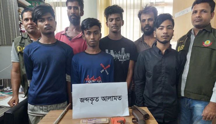 গ্রেপ্তারকৃত ছয়জন হলেন- সুজন হাওলাদার (৩২), রবিউল আউয়াল ওরফে রবি (১৯), বাবু ওরফে জুয়েল (২২), মো. রনি (১৯), একরাম আলী (৩৩) ও ইব্রাহিম মাঝি (২০)। তাদের কাছ থেকে একনলা বন্দুক, ডাকাতিতে ব্যবহৃত সিএনজিচালিত অটোরিকশা, চাপাতি, দুটি ছুরি, লোহার রড, পাইপ কাটার রেঞ্জ ও নগদ ২৫ হাজার টাকা উদ্ধার করা হয়েছে।