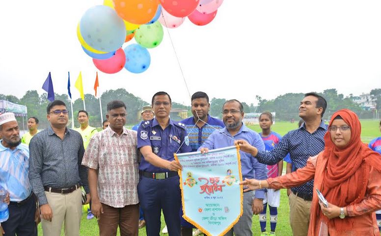 জেলা স্টেডিয়ামে সকালে উদ্বোধনী খেলায় বালিকা দলে মুখোমুখি হয় সদর উপজেলা বনাম বিরামপুর উপজেলা। খেলায় ১০-০ গোলে জয়লাভ করে সদর উপজেলার মেয়েরা। খেলার শুরু থেকে দলকে এগিয়ে নিতে আক্রমন শুরু করে উভয় দলই। পুরো খেলায় গোল শুন্য থাকে বিরামপুর উপজেলার মেয়েরা।