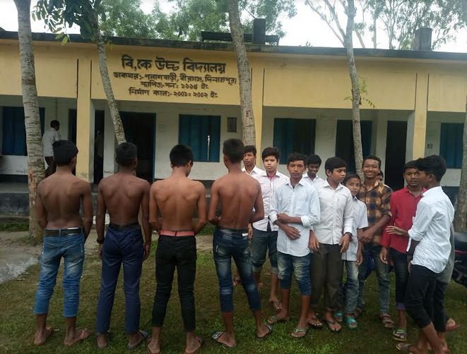 উপজেলার পলাশবাড়ী ইউনিয়নের বিকে উচ্চ বিদ্যালয়ে গত ৬ জুন সোমবার ইংরেজি ১ম পত্র পরীক্ষা চলাকালে সহকারী শিক্ষক চঞ্চল রায়ের সিটে কে বা কাহারা চুইংগাম লাগায়। ঐ ঘটনায় শিক্ষক চঞ্চল রায় পরীক্ষা শেষে বিদ্যালয়ের রুমের দরজা লাগিয়ে নবম ও ষষ্ঠ শ্রেনীর ২০/২২ জন ছাত্রকে আটক করে লাঠি দিয়ে আঘাত করে আহত করে।