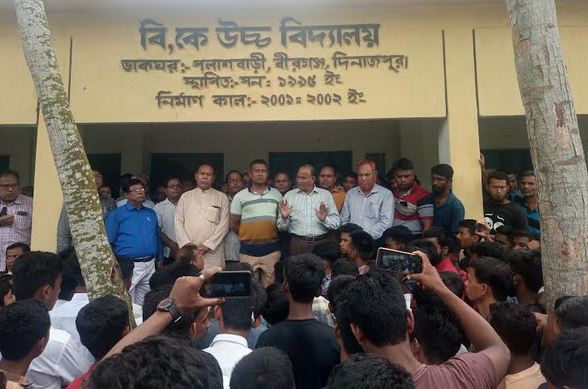 এই খবর পেয়ে বীরগঞ্জ উপজেলা শিক্ষা অফিসার কন্দর্প নারায়ন রায় সেখানে উপস্থিত হয়ে ছাত্র অভিভাবকদের শান্ত করে স্কুলে নিয়ে যান। তিনি বিদ্যালয়ে উপস্থিত হয়ে ছাত্র ও অভিভাবকদের অভিযোগ শুনে বিদ্যালয়ের ম্যানেজিং কমিটির সদস্য ও গণ্যমান্য ব্যক্তি এবং স্কুলের প্রধান শিক্ষককে নিয়ে জরুরি বৈঠক করেন।