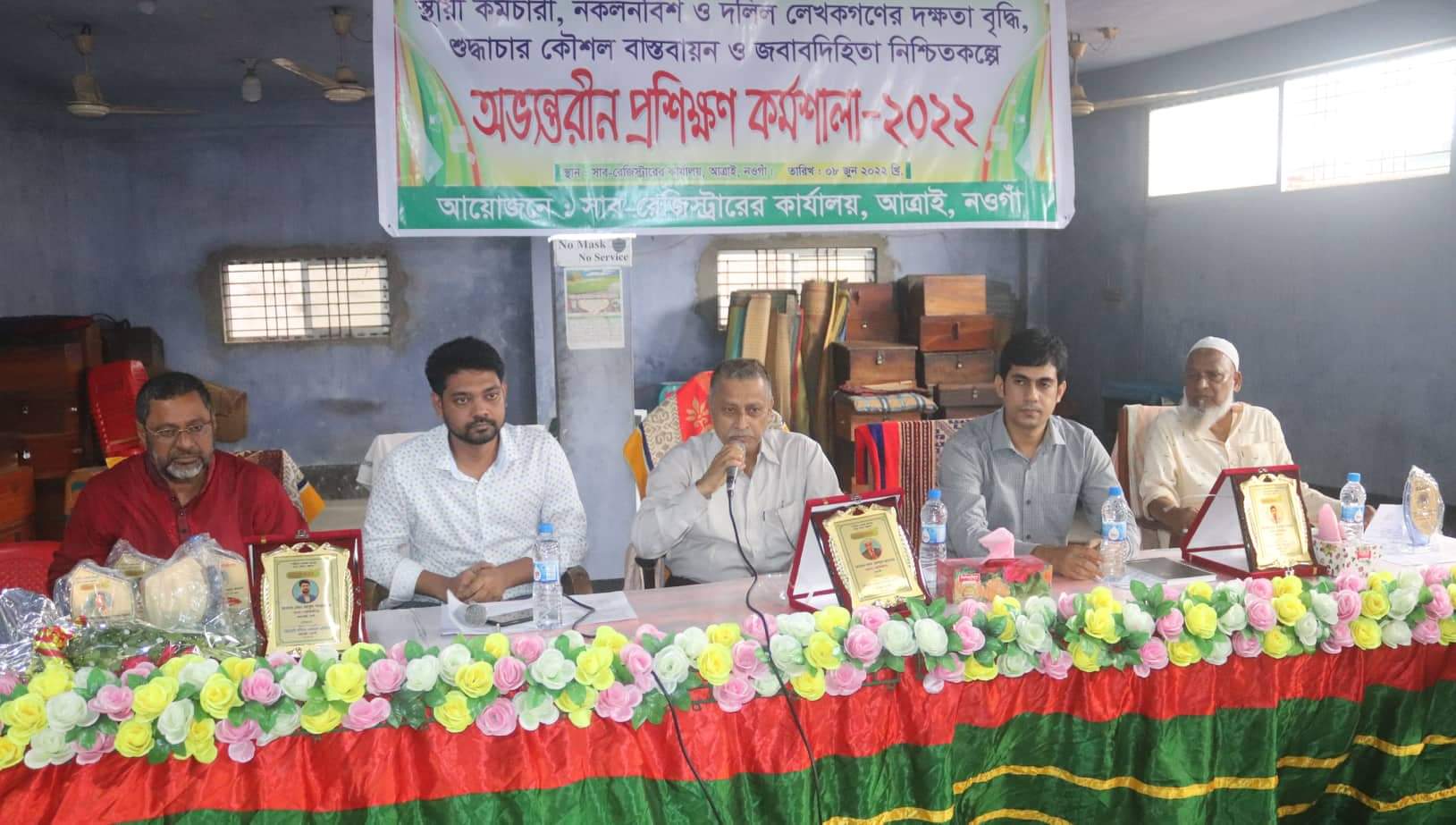 আবুহেনা,আত্রাই নওগাঁঃ নওগাঁর আত্রাইয়ে সাব-রেজিস্ট্রারের কার্যালয়ের আয়োজনে স্থায়ী কর্মচারী,নকলনবিশ ও দলিল লেখকগনের দক্ষতা বৃদ্ধি, শুদ্ধাচার কৌশল বাস্তবায়নে ও জবাবদিহিতা নিশ্চিতকল্পে অভ্যন্তরীন প্রশিক্ষণ কর্মশালা,২০২২ অনুষ্ঠিত হয়েছে।