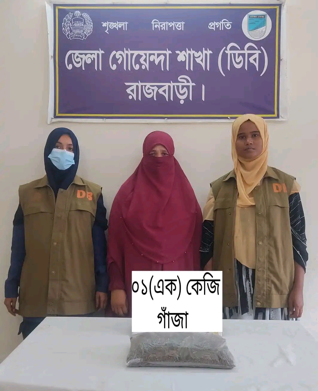 রাজবাড়ী প্রতিনিধি: রাজবাড়ীতে জেলা গোয়েন্দা পুলিশ (ডিবির) অভিযানে গাজা সহ মোছা নাজমা আক্তার (৩৫) নামে এক মাদক কারবারি গ্রেপ্তার।