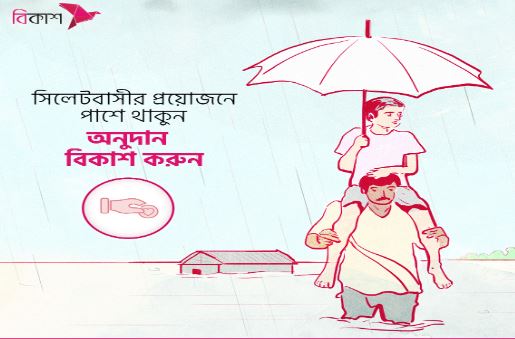 চলমান এই সংকটময় পরিস্থিতিতে স্বেচ্ছাসেবী সংগঠনগুলো বিকাশের মাধ্যমে পাওয়া অনুদানগুলো কাজে লাগিয়ে বন্যা দুর্গত মানুষদের কাছে প্রয়োজনীয় সহায়তা পৌঁছে দিবে।