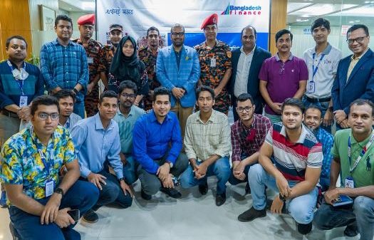দেশের অন্যতম শীর্ষস্থানীয় আর্থিক প্রতিষ্ঠান- বাংলাদেশ ফাইন্যান্সের উদ্যোগে অগ্নি নির্বাপণ, জরুরী উদ্ধার ও বহির্গমন বিষয়ক প্রশিক্ষণ ও মহড়া অনুষ্ঠিত হয়েছে। বৃহস্পতিবার (২৩ জুন) ঢাকার দিলকুশায় প্রতিষ্ঠানটির প্রধান কার্যালয়ে বাংলাদেশ ফায়ার সার্ভিস ও সিভিল ডিফেন্স এর প্রত্যক্ষ তত্ত্বাবধানে এই অগ্নি প্রতিরোধ বিষয়ক প্রশিক্ষণ অনুষ্ঠিত হয়।