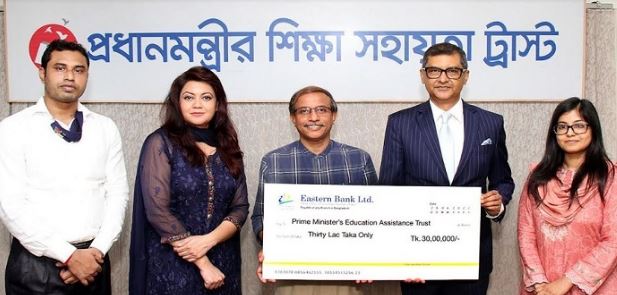 প্রধানমন্ত্রীর শিক্ষা সহায়তা ট্রাস্ট তহবিলে ৩০ লাখ টাকা অনুদান দিয়েছে ইস্টার্ণ ব্যাংক লিমিটেড (ইবিএল)। নিজস্ব সামাজিক দায়বদ্ধতার অংশ হিসেবে ইবিএল এ অর্থ প্রদান করে।