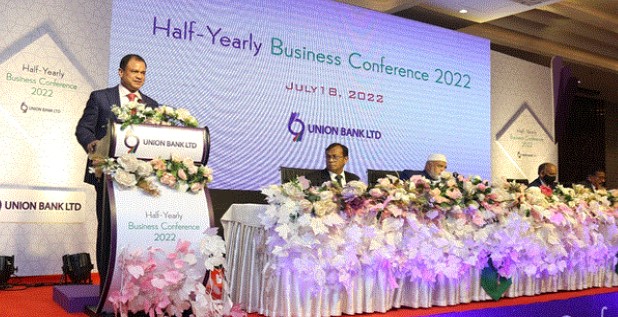 এসময় তিনি বলেন, গত দুই বছর করোনাভাইরাসে ব্যবসা-বাণিজ্যের স্থবিরতাসহ নানা প্রতিকূলতা সত্তে¡ও ইউনিয়ন ব্যাংক সবকটি আর্থিক সূচকে ভালো করেছে। বর্তমানে ব্যাংকের ডিপোজিটের পরিমাণ ২১,৫৪৬ কোটি (একুশ হাজার পাঁচশত ছেচল্লিশ কোটি) টাকা এবং ২০২১ সালে ব্যাংকের রেটিং দীর্ঘ মেয়াদে ‘এ+’ এবং স্বল্প মেয়াদে ‘এসটি-২’ যা ইউনিয়ন ব্যাংকের শক্তিশালী আর্থিক ভিত্তি, উত্তম তারল্য অবস্থা ও কাঠামোগত স্থিতিশীলতার নির্দেশক। এছাড়াও তিনি সমবেত সকলকে প্রথম অর্ধ-বার্ষিক সাফল্যের জন্য অভিনন্দন জানান এবং কাঙ্খিত সেবা প্রদানের মাধ্যমে ২০২২ সালের ব্যবসায়িক লক্ষ্যমাত্রা অর্জনে সর্বাত্মক প্রচেষ্টা গ্রহণের পরামর্শ দেন।