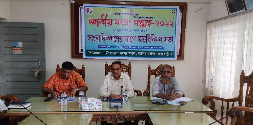 (রাজবাড়ী) প্রতিনিধি: রাজবাড়ীর বালিয়াকান্দিতে জাতীয় মৎস সপ্তাহ ২০২২উপলক্ষ্যে সাংবাদিকদের সাথে মতবিনিময় সভা অনুষ্ঠিত হয়েছে।