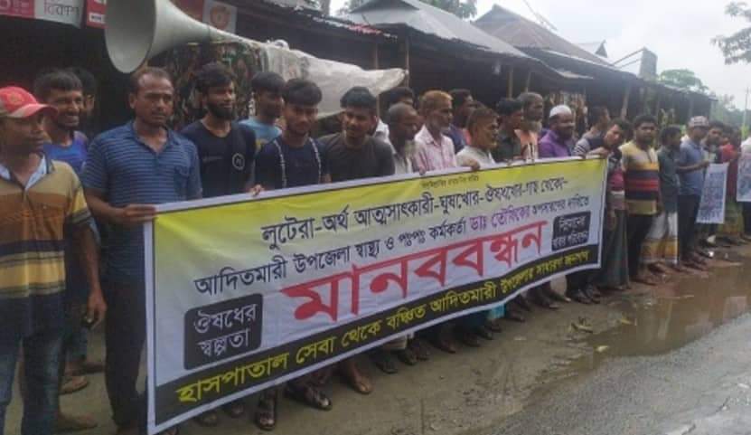 অলিউজ্জামান অলির সভাপতিত্বে অনুষ্ঠিত লালমনিরহাট -বুড়িমারী মহাসড়কের আদিতমারী উপজেলা স্বাস্থ্য কমপ্লেক্সের সামনে মহাসড়কে দুই ঘন্টা ব্যাপি এ মানববন্ধন কর্মসূচি অনুষ্ঠিত হয়েছে। পরে তারা বিক্ষোভ করেন। এ সময় শতাধিক ভুক্তভোগী অংশ নেয়। মানববন্ধনে অংশ গ্রহনকারীা অবিলম্বে হাসপাতালের সকল অনিয়ম বন্ধের দাবী জানান। তারা ঊর্ধ্বতন কতৃপক্ষের হস্তক্ষেপ কামনা ও দায়িত্বরত উপজেলা স্বাস্থ্য কমপ্লেক্সের স্বাস্থ্য ও পরিবার পরিকল্পনা কর্মকর্তা ডাক্তার তৌফিক আহমেদের বদলী দাবি করেন।