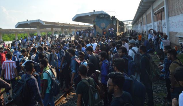 ইঞ্জিন স্টার্ট দিয়ে দাঁড়িয়ে থাকে ট্রেন। পরীক্ষার্থীদের সরে যেতে ট্রেনটি যতবার হুইশেল দেয়, ততবারই পরীক্ষার্থীরা চিৎকার করতে থাকেন। দিতে থাকেন স্লোগান। রেলওয়ে নিরাপত্তা বাহিনীর সদস্যরা তাদের সরাতে ব্যর্থ হন। আসে দাঙ্গা পুলিশ। এরপর আসে র্যাব। কিন্তু কেউ পরীক্ষার্থীদের জোর করে সরিয়ে দেওয়ার সাহস দেখায়নি।