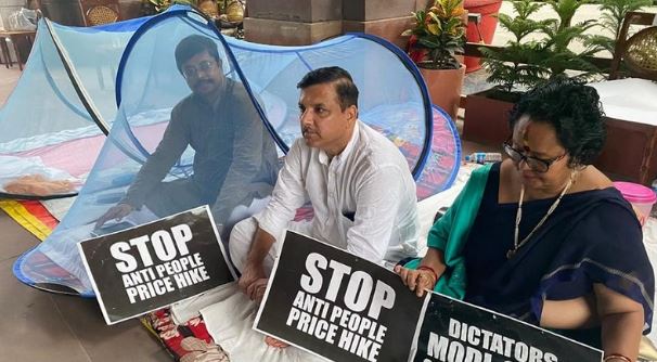 ডিএমকে সাংসদের বাড়ি থেকে মধ্যাহ্নভোজ হিসাবে ইডলি-সম্বর আসছে তো নৈশভোজের ব্যবস্থা করছে তৃণমূল ফিস ফ্রাই, তন্দুরি চিকেন দিয়ে। এর মধ্যেই বৃষ্টি নেমে যাওয়ায় সাংসদরা চাদর, বালিশ, মশারি নিয়ে ছুটেছেন সংসদের মূল প্রবেশদ্বারের সামনের পোর্টিকোতে। সারারাত তারা সেখানেই থাকলেন। এই বিরোধী সাংসদদের মধ্যে আপ, তৃণমূল, ডিএমকে, টিআরএস এবং বামেরা ছিলেন। কংগ্রেস সাংসদরা সেখানে গিয়ে তাদের নৈতিক সমর্থন জানিয়ে এসেছেন। টানা দুই দিনেরও বেশি সময় ধরে এই ভাবে বিক্ষোভ দেখানোর পর শুক্রবার বেলা একটা নাগাদ তাদের বিক্ষোভ শেষ হয়।