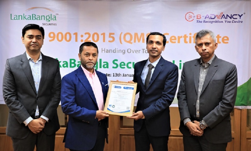 আজ বৃহষ্পতিবার (১৩ জানুয়ারি) লংকাবাংলা সিকিউরিটিজ লিমিটেডের ব্যবস্থাপনা পরিচালক, মোহাম্মদ নাসির উদ্দিন চৌধুরী বি-অ্যাডভান্সির পরিচালক আলমগীর হোসাইন মিল্কীর কাছ থেকে এই আইএসও সনদ আনুষ্ঠানিকভাবে গ্রহণ করলেন। বি-অ্যাডভান্সি লংকাবাংলা সিকিউরিটিজের ব্যবসা এবং অপারেশনাল প্রক্রিয়াগুলির স্বাধীন মূল্যায়নের পর এ সনদ দিয়েছে।