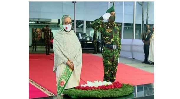 প্রথমে তিনি প্রধানমন্ত্রী হিসেবে জাতির পিতার প্রতিকৃতিতে শ্রদ্ধা নিবেদন করেন। এ সময় সশস্ত্র বাহিনীর সদস্যগণ অনার গার্ড প্রদান করেন, বিউগলে বাজানো হয় করুণ সুর। এরপর প্রধানমন্ত্রী ফাতেহা পাঠ এবং মোনাজাতে অংশগ্রহণ করেন। পরে আওয়ামী লীগ সভাপতি হিসেবে দলের শীর্ষ নেতাদের দ্বিতীয় বার বঙ্গবন্ধুর প্রতিকৃতিতে শ্রদ্ধা নিবেদন করেন।
