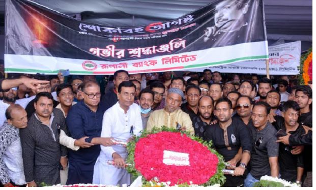 জাতির পিতা বঙ্গবন্ধু শেখ মুজিবুর রহমানের ৪৭তম শাহাদতবার্ষিকী ও জাতীয় শোক দিবস-২০২২ উপলক্ষে তার স্মৃতির প্রতি শ্রদ্ধা নিবেদন করেছে রাষ্ট্রায়ত্ত রূপালী ব্যাংক লিমিটেড।