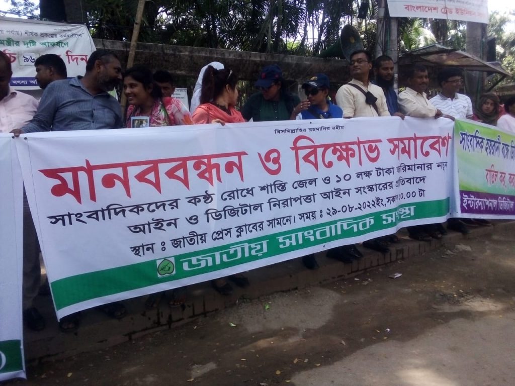 ২ সাংবাদিকদের অধিকার রক্ষা, পেশাদারিত্বের ক্ষেত্রে মুক্ত গনমাধ্যমের বৈশ্বিক দাবী বাস্তবায়নে সংবাদপত্র সংশ্লিষ্ট ডিজিটাল নিরাপত্তা আইন সংস্কার করতে হবে এবং বর্তমানে যে মামলাগুলো হয়েছে তা প্রেস কউন্সিলে হস্তন্তর সহ যে কোন মামলা দেশের যে কোন এলাকায়ই ঘটে থাকুক না কেন তা শুধুমাত্র প্রেস কাউন্সিলেই মামলা করতে হবে এবং প্রেস কাউন্সিলের অনুমতি ব্যতিত কোন সাংবাদিককে গ্রেফতার করা যাবে না। সংবাদপত্রে প্রকাশিত সংবাদের বিষয়ে সংক্ষুদ্ধ ব্যাক্তি বা প্রতিষ্ঠান দেশের কোন থানায় বা কোর্টে মামলা করতে পারবে না, শুধু মাত্র প্রেস কাউন্সিলেই করতে হবে। ওয়েবসাইটে প্রকাশিত সংবাদে সংক্ষুদ্ধ ব্যক্তি প্রথমে সংম্পাদক বরাবর প্রতিবাদ পত্র পাঠাবে, সম্পাদক তা আমলে নিয়ে প্রতিবাদ প্রকাশ করবে, তাতেও যদি প্রতিবাদের ভাষা বা আকার প্রকারে আপত্তি থাকে বা সন্তুষ্ট হতে না পারে তা হলে ডিজিটাল নিরাপত্তা আইনে প্রেস কাউন্সিলেই এ মামলা করতে পারবে। প্রিন্ট মিডিয়ার ক্ষেত্রে যে আইন বিদ্যমান রয়েছে সেভাবেই ডিজিটাল নিরাপত্তা আইনের মামলা নিস্পত্তি করতে হবে।
