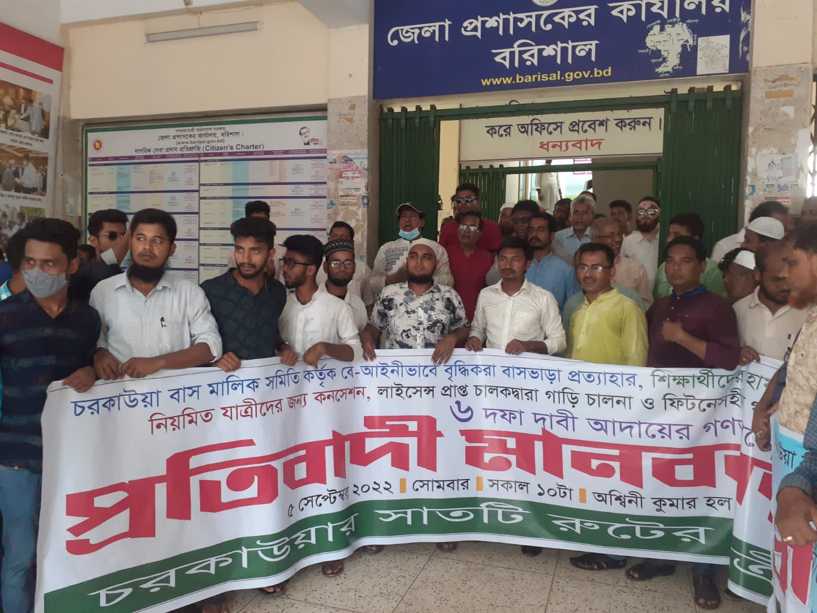 এস এল টি তুহিন : বরিশালের চরকাউয়া বাস ও মিনিবাস মালিক সমিতির আওতাধীন ৭টি রুটে অতিরিক্ত ভাড়া প্রত্যাহার, যাত্রী হয়রানি বন্ধ, ফিটনেস বিহীন গাড়ি চলাচল বন্ধ করা সহ ৬ দফা দাবিতে প্রতিবাদী মানববন্ধন করেছে এই রুটের সাধারণ যাত্রীরা। সোমবার সকালে নগরীর অশ্বিনী কুমার হলের সামনে এই মানববন্ধন অনুষ্ঠিত হয়। বাকেরগঞ্জ মুক্তিযোদ্ধা সন্তান কমান্ডের সভাপতি ফারুক মল্লিকের সভাপতিত্বে প্রতিবাদী মানববন্ধনে বক্তব্য রাখেন জেলা গন সংহতি আন্দোলনের সদস্য সচিব দেওয়ান আব্দুর রশিদ নিলু, বাকসিস সভাপতি অধ্যাপক মহাসিনুল ইসলাম হাবুল, শ্রমিক নেতা একে আজাদ সহ বিভিন্ন রাজনৈতিক ও সামাজিক সংগঠনের নেতা ও সাধারণ যাত্রীরা। মানববন্ধনে দেওয়ান আব্দুর রশিদ নিলু বলেন, প্রতিদিন প্রায় ৮ হাজার যাত্রী চলাচল করে চরকাউয়া বাস টার্মিনালের ৭টি রুটে। বিআরটিএ ভাড়া নির্ধারণ করে দিলেও তা মানছে না বাস মালিক সমিতি। এছাড়া যাত্রী হয়রানি, ফিটনেস বিহীন গাড়ি চলাচল করেছে নিয়মিত। এসময় বক্তারা দ্রুত সাধারণ যাত্রীদের করা ৬ দফা দাবি দ্রুত বাস্তবায়নের দাবি জানান। মানববন্ধন শেষে একটি মিছিল নগরীর প্রধান প্রধান সড়ক প্রদক্ষিণ করে জেলা প্রশাসকের কার্যালয়ে গিয়ে শেষ হয়। এরপর ৬ দফা দাবি সহ জেলা প্রশাসক বরাবর স্মারকলিপি প্রদান করে আন্দোলরকারিরা।