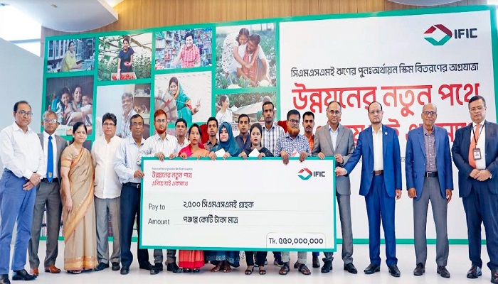 একযোগে দুই হাজার পাঁচশো জন সিএমএসএমই উদ্যোক্তাদের মাঝে ঋণ বিতরণ করল। এই উপলক্ষে রাজধানীর পুরানা পল্টনে অবস্থিত আইএফআইসি টাওয়ারে অনুষ্ঠিত হলো ‘সিএমএসএমই ঋণের পুনঃঅর্থায়ন স্কিম বিতরণের অগ্রযাত্রা’ শীর্ষক অনুষ্ঠান। অনুষ্ঠানে প্রধান অতিথি হিসেবে উপস্থিত থেকে এই বৃহৎ কর্মসূচির আনুষ্ঠানিক উদ্বোধন করেন এই স্কিমের রূপকার বাংলাদেশ ব্যাংকের মাননীয় গভর্নর জনাব আব্দুর রউফ তালুকদার। সভাপতিত্ব করেন আইএফআইসি ব্যাংকের পরিচালক জনাব এ.আর.এম নাজমুস ছাকিব। অনুষ্ঠানে উপস্থিত ছিলেন আইএফআইসি ব্যাংকের ব্যবস্থাপনা পরিচালক ও প্রধান নির্বাহী জনাব শাহ এ সারওয়ার, বাংলাদেশ ব্যাংকের ডেপুটি গভর্নর জনাব আবু ফারাহ মো. নাসের, আইএফআইসি ব্যাংকের সম্মানিত পরিচালকবৃন্দ, বাংলাদেশ ব্যাংক ও আইএফআইসি ব্যাংকের ঊর্ধ্বতন কর্মকর্তাবৃন্দ, নানা গুণীজন ও সাংবাদিকবৃন্দ।