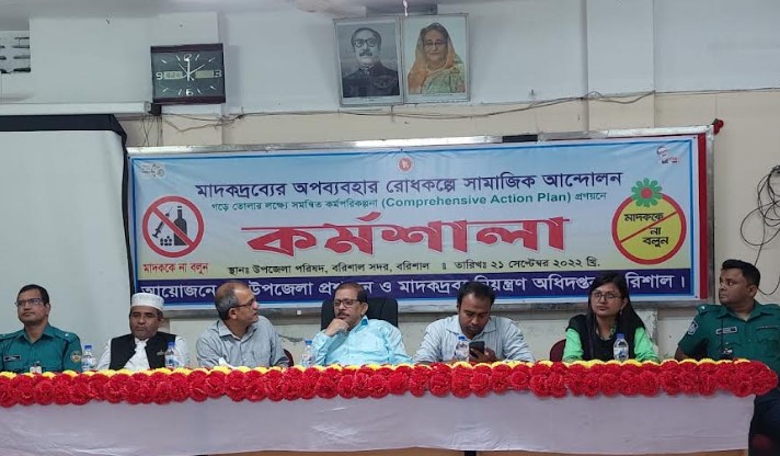 এস এল টি তুহিন,বরিশাল : মাদকদ্রব্যের অপব্যবহার রোধকল্পে সামাজিক আন্দোলন গড়ে তোলার লক্ষ্যে সমন্বিত কর্মপরিকল্পনা প্রণয়নে দিনব্যাপী কর্মশালা অনুষ্ঠিত হয়েছে। বুধবার (২১ সেপ্টেম্বর ) বরিশাল সদর উপজেলা প্রশাসনের আয়োজনে এবং মাদকদ্রব্য নিয়ন্ত্রণ অধিদপ্তরের সহযোগিতায় উপজেলা পরিষদ মিলনায়তনে এই কর্মশালা অনুষ্ঠিত হয়েছে। বরিশাল সদর উপজেলা নির্বাহী কর্মকর্তা মনিরুজ্জামানের সভাপতিত্বে প্রধান অতিথি হিসেবে উপস্থিত ছিলেন,বরিশাল সদর উপজেলা চেয়ারম্যান সাইদুর রহমান রিন্টু, বিশেষ অতিথি হিসেবে উপস্থিত ছিলেন, বরিশাল মাদকদ্রব্য নিয়ন্ত্রণ অধিদপ্তরের অতিরিক্ত পরিচালক পরিতোষ কুমার কুন্ডু,ডাঃ নুরুন্নাহার চুমকি,বরিশাল কোতোয়ালি থানার ওসি আজিজুল করিম,বরিশাল সদর উপজেলা ভাইস চেয়ারম্যান এডভোকেট মাহাবুধুর রহমান মধু, মহিলা ভাইস চেয়ারম্যান রেহেনা বেগম। এ ছাড়াও কর্মশালায় উপস্থিত ছিলেন বিভিন্ন অফিসের কর্মকর্তা, শিক্ষক-শিক্ষিকা, এনজিও প্রতিনিধি, ইউনিয়ন পরিষদের চেয়ারম্যান, ইউনিয়ন পরিষদের সদস্য-সদস্যাগন, ইমামসহ প্রিন্ট ও ইলেকট্রনিক মিডিয়ার সাংবাদিকবৃন্দ। কর্মশালায় বক্তারা বলেন, প্রজন্মকে রক্ষা করতে যেকোন মূল্যে মাদকদ্রব্যের অপব্যবহার রোধকল্পে বিভিন্ন গুরুত্বপূর্ণ বিষয় তুলে ধরে আলোচনা করেন। এ সময় বক্তারা আরো বলেন, তরুণরা দেশ, জাতি ও সমাজের উজ্জ্বল নক্ষত্র, জাতির আগামী দিনের কর্ণধার। সমাজ ও দেশকে আরও গতিশীল করতে জাতির মূল চালিকাশক্তি হলো তরুণরাই। কিন্তু তরুণ প্রজন্মকে ধ্বংসের দিকে নিয়ে যাচ্ছে মাদক। তরুণ প্রজন্মকে মাদক থেকে দূরে রাখতে খেলাধুলা,সাংস্কৃতিক ও বিনোদনের বিকল্প নেই। তবে মাদকের হাত থেকে সন্তানকে রক্ষা করতে অভিভাবকের গুরুত্ব অপরিসীম। তাছাড়া মসজিদের ইমামরা শুক্রবার মাদকের কুফল সম্পর্কে বয়ান দিতে পারেন।