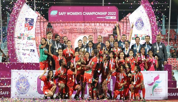বিজ্ঞপ্তিতে জানানো হয়, সাফ নারী ফুটবল চ্যাম্পিয়নশিপ ২০২২-এ অপরাজিত চ্যাম্পিয়ন হয় বাংলাদেশ জাতীয় দল। এজন্য বাংলাদেশ সেনাবাহিনীর পক্ষ থেকে আগামী ২৭ সেপ্টেম্বর সংবর্ধনা দেওয়া হবে। সাফজয়ী ফুটবল দলকে এক কোটি টাকা পুরস্কার দেওয়া হবে।