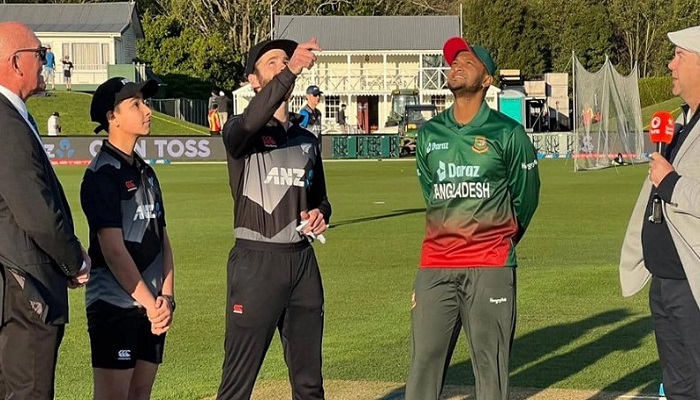 পাকিস্তানের বিপক্ষে প্রথম ম্যাচে হারের পর দ্বিতীয় ম্যাচে আজ নিউজিল্যান্ডের মুখোমুখি হয়েছে বাংলাদেশ। এই ম্যাচে টস হেরেছেন অধিনায়ক সাকিব আল হাসান। নিউজিল্যান্ড অধিনায়ক কেন উইলিয়ামসন টস জিতেই নিয়েছেন ফিল্ডিংয়ের সিদ্ধান্ত।